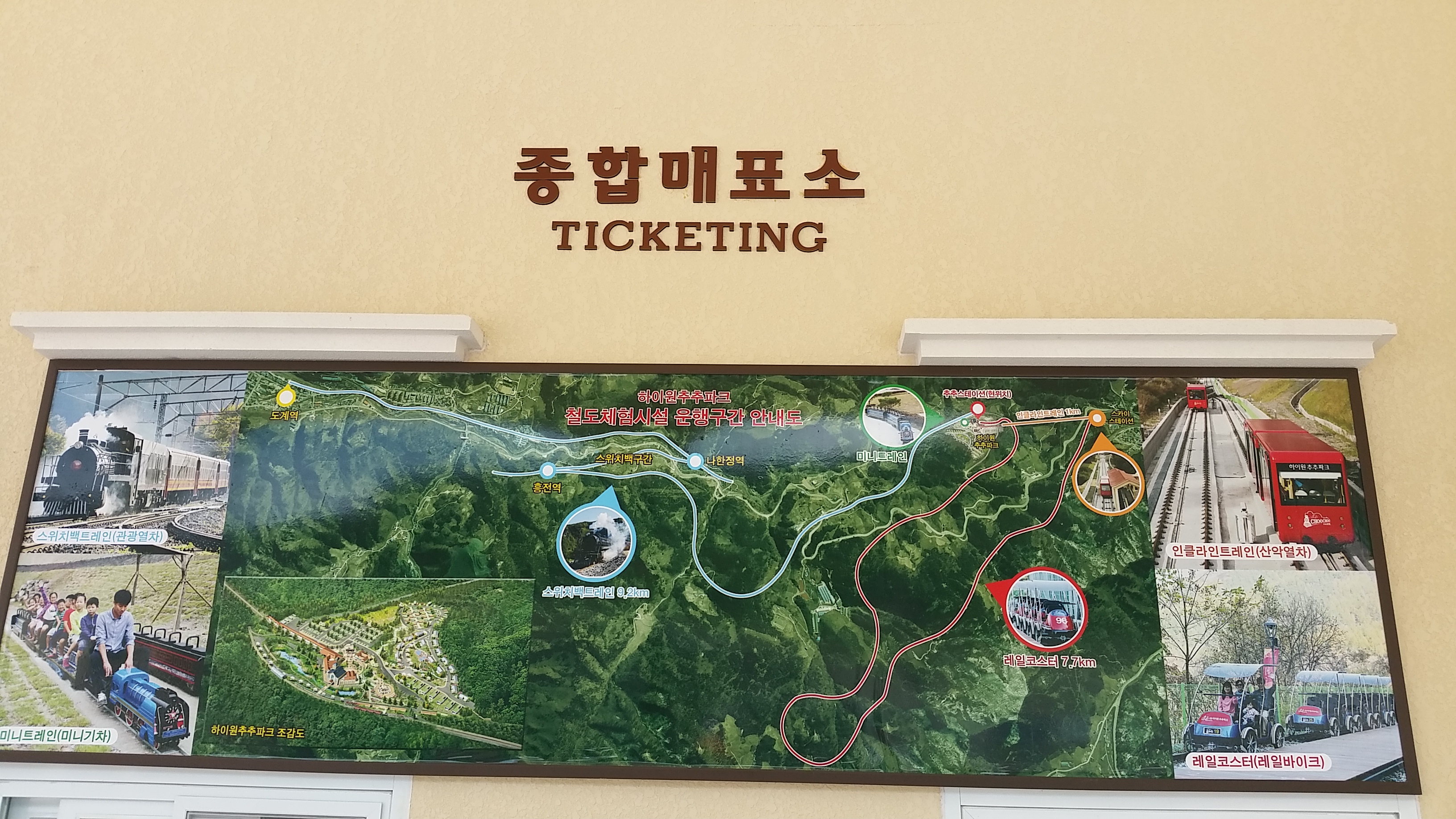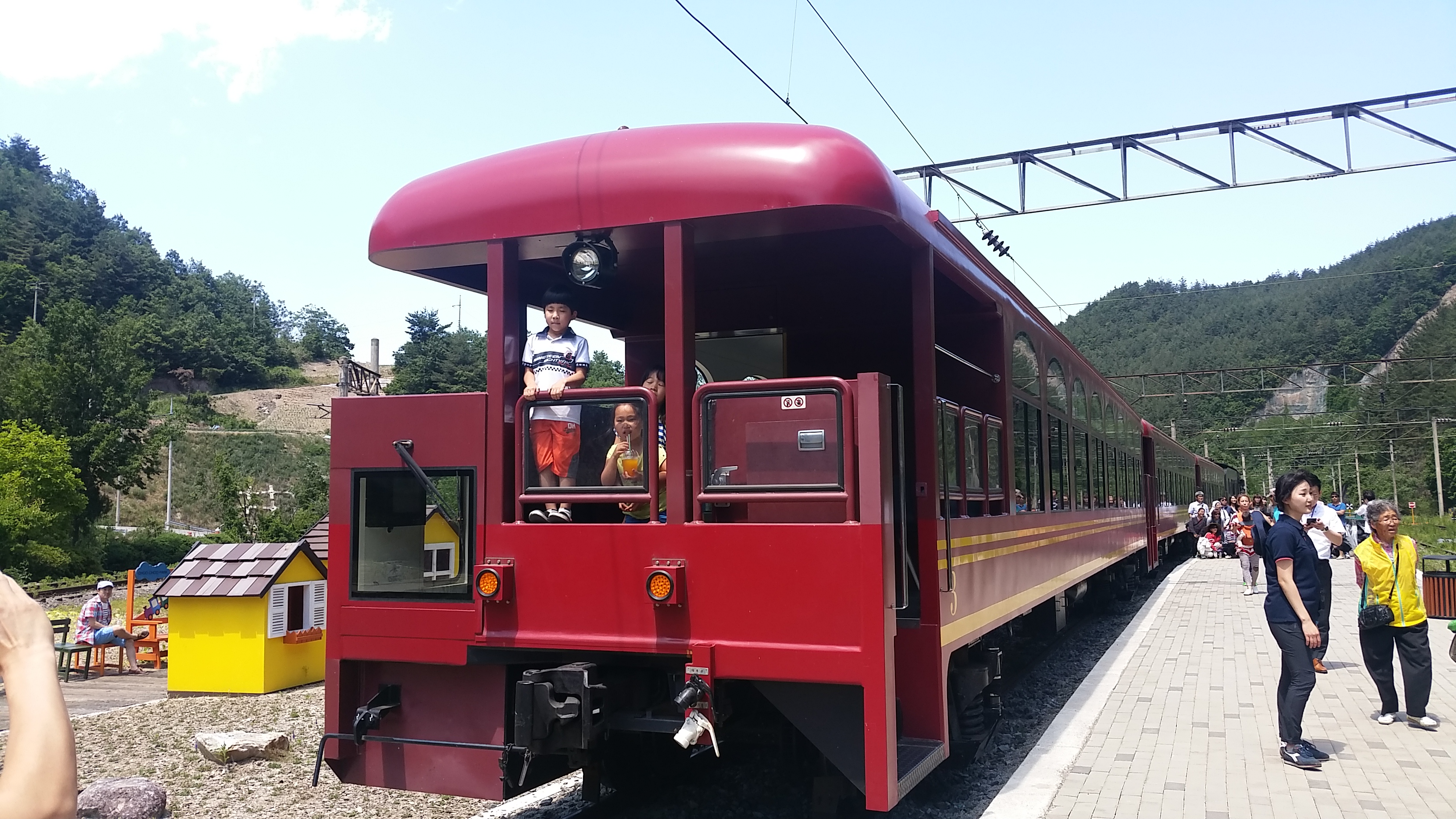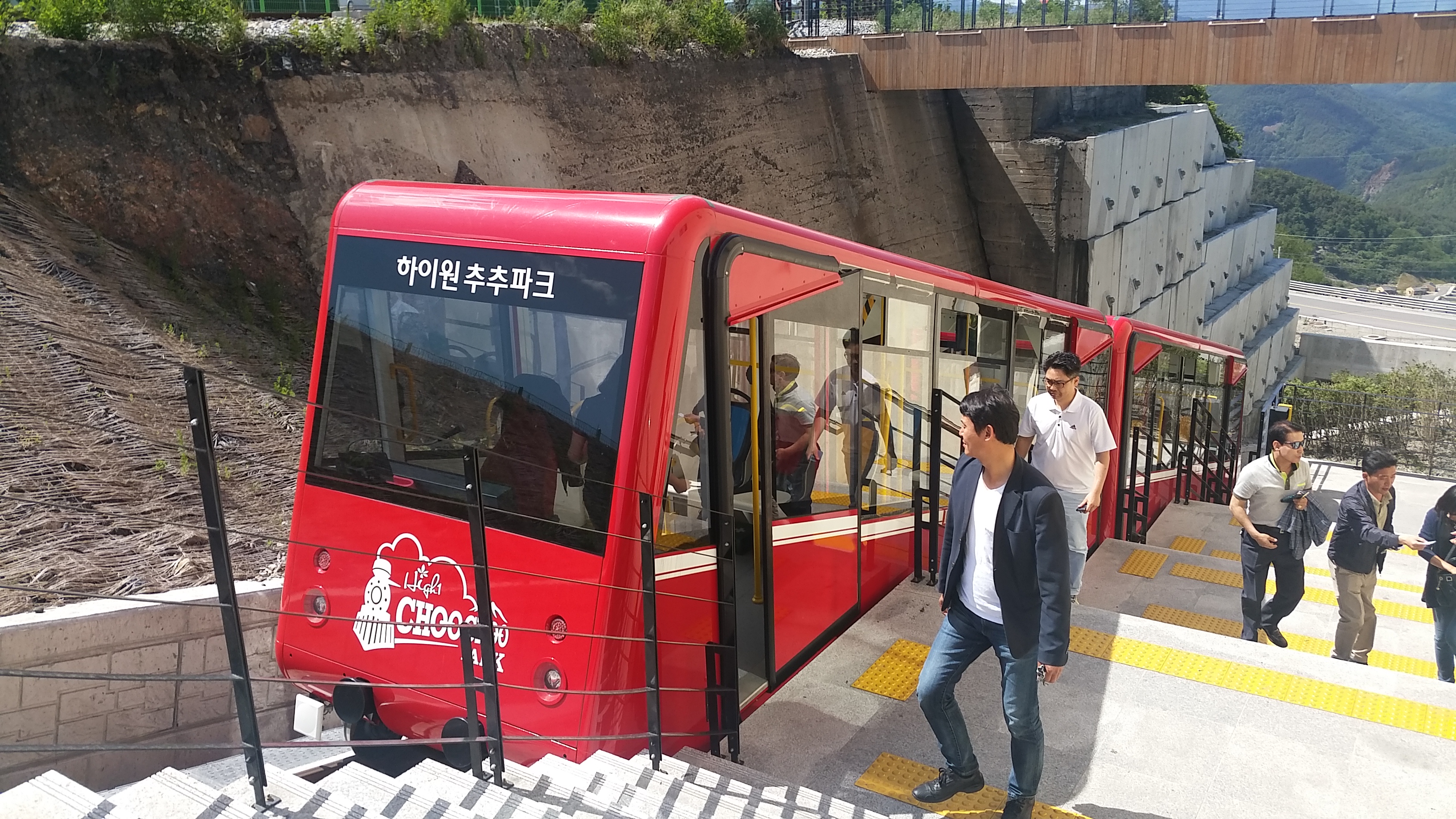 국내유일의 스위스형 산악열차라고 하며 15.6도의 경사를 오르내리니 올라가서 경치를 보시면