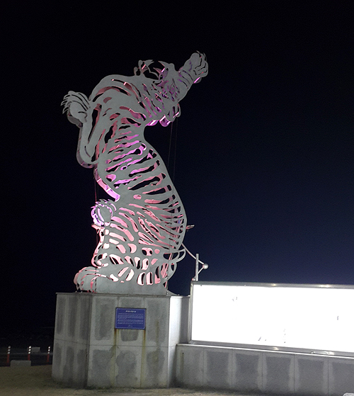 야간에 보는 상생의 손과 한반도 호랑이상도 멋졌습니다