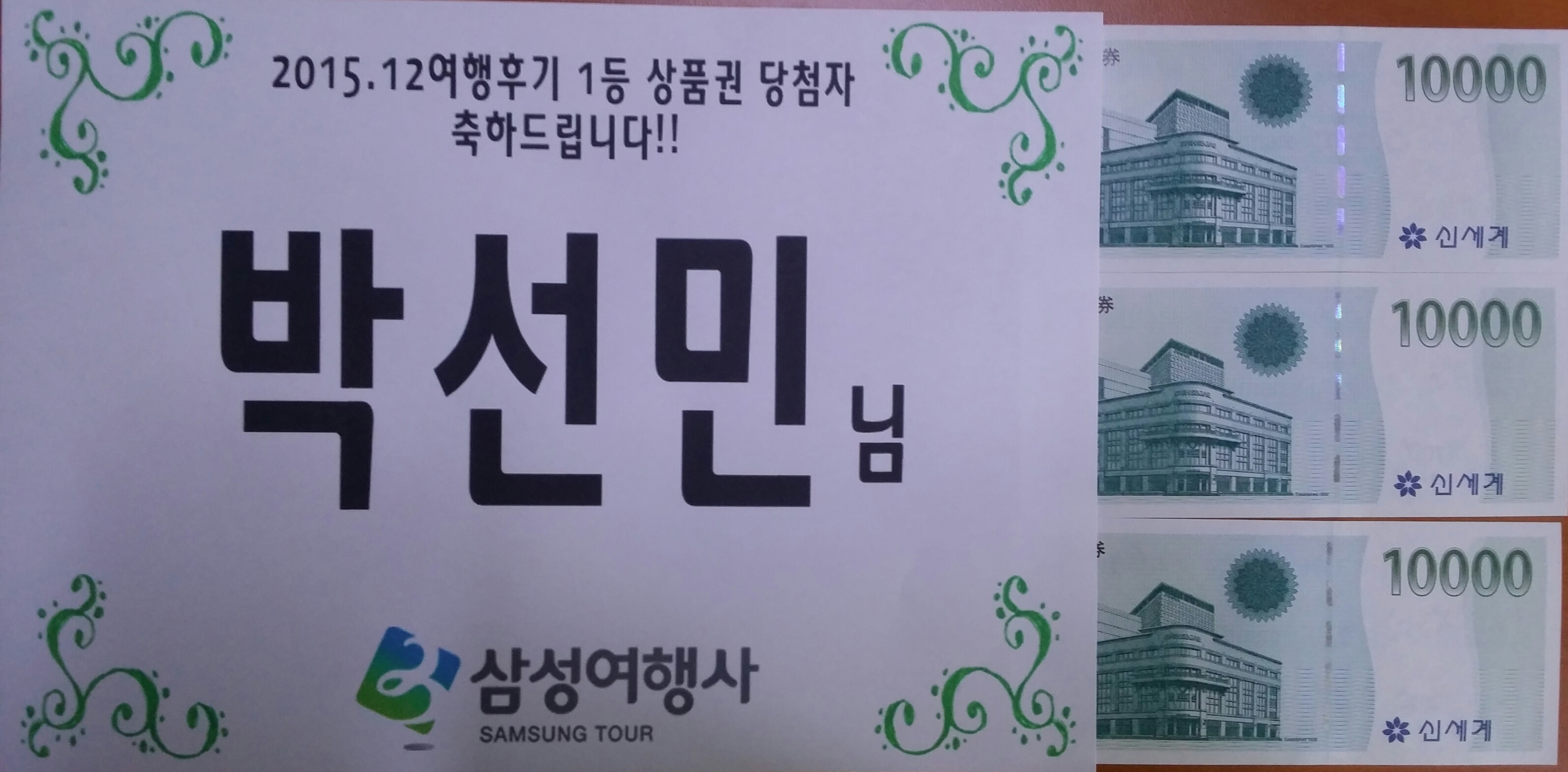 안녕하세요, 삼성여행사입니다~ 12월 여행후기 당첨자입니다! 1월 더더욱 많은 후기를 기대하며 2016년 새해 복 많이 받으세요♥ 12월 후기 이벤트에 선정된 분들은 아래와 같습니다 ^^ ★ 1등 백화점상품권(3만원) 당첨자: 박선민님 010-4308-**** ★ 영화권 당첨자: 총 6명 (김희자~조수민님) ![]() 당첨되신 모든 분들 진심으로 축하드립니다. 상품권은 우편등기를 이용해 자택으로 보내드리며 영화표는 여행후기 등록 당시 핸드폰으로 보내드립니다. 감사합니다^_^ |