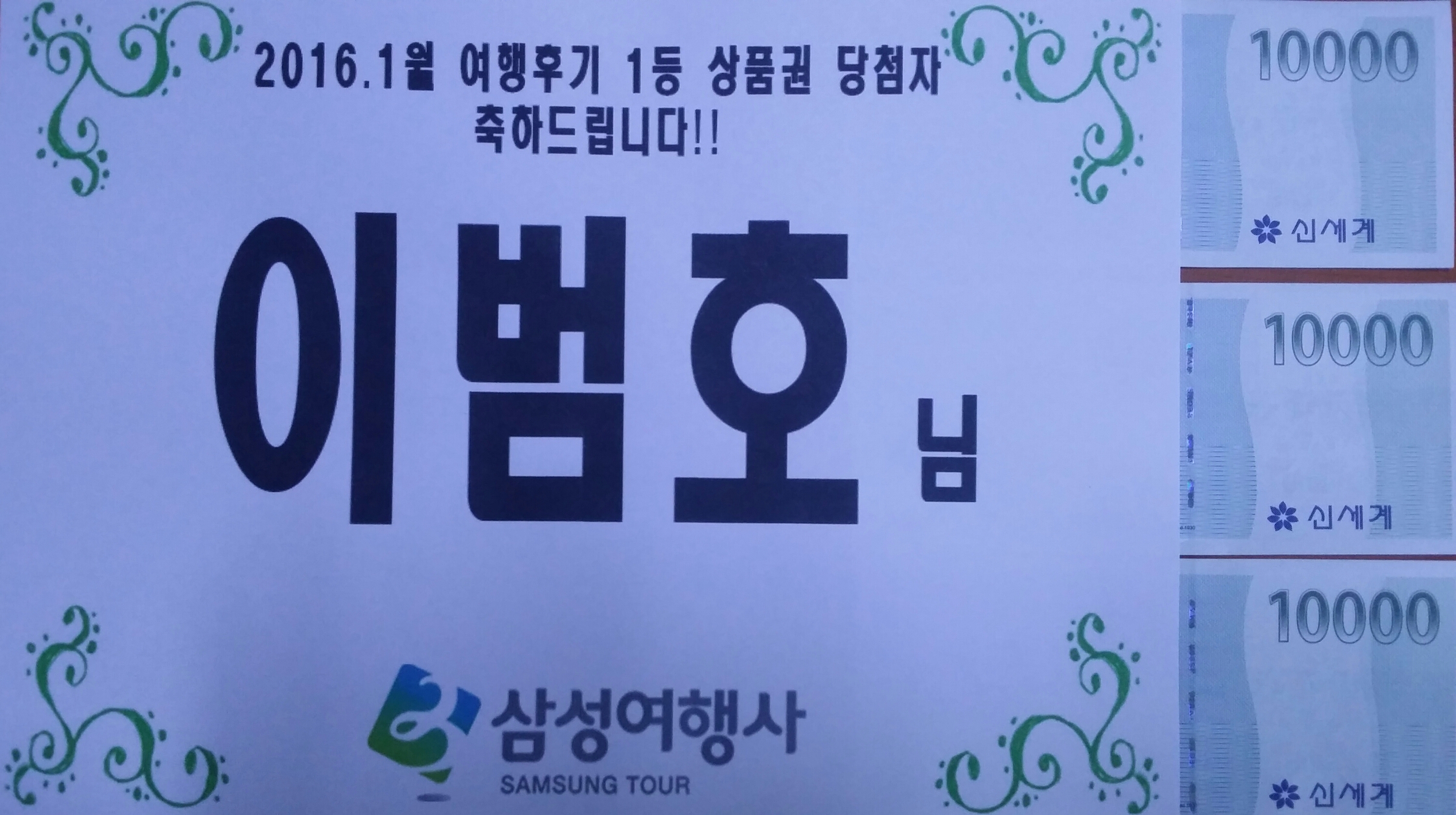 영화표는 여행후기 등록 당시 핸드폰으로 보내드립니다.