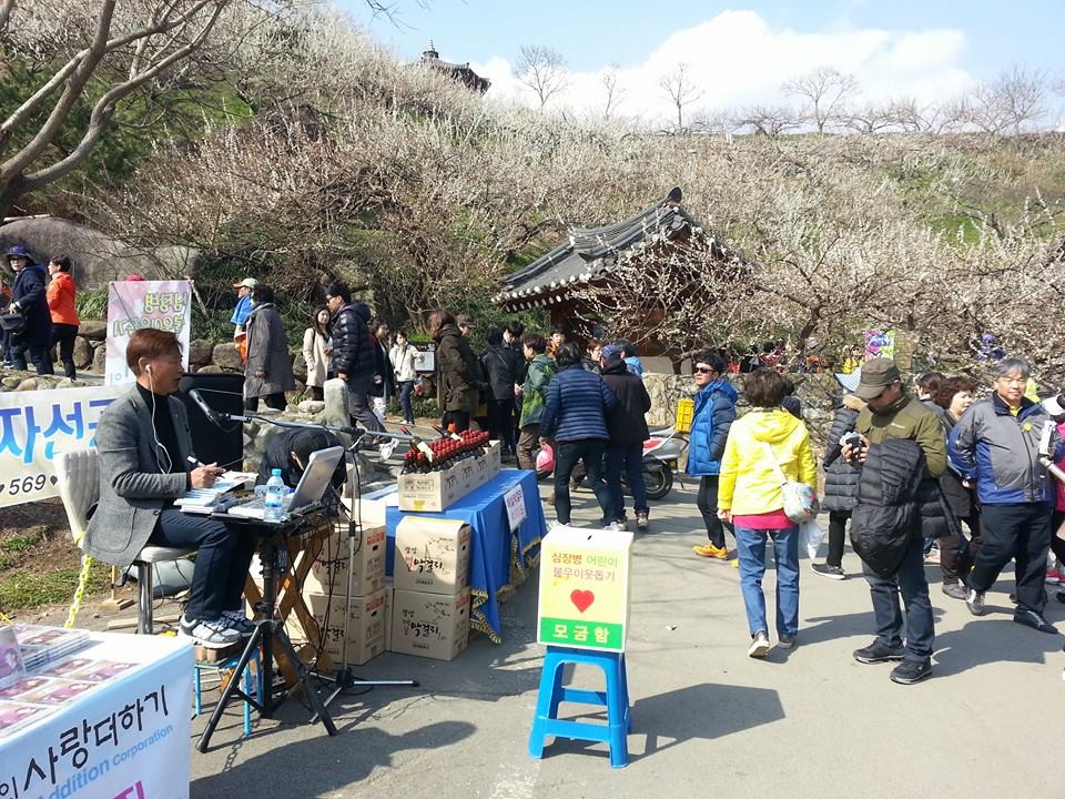 매화축제 기간동안 가수 수와진이 불우이웃을 위한 모금 공연을 계속 하고 계시네요.