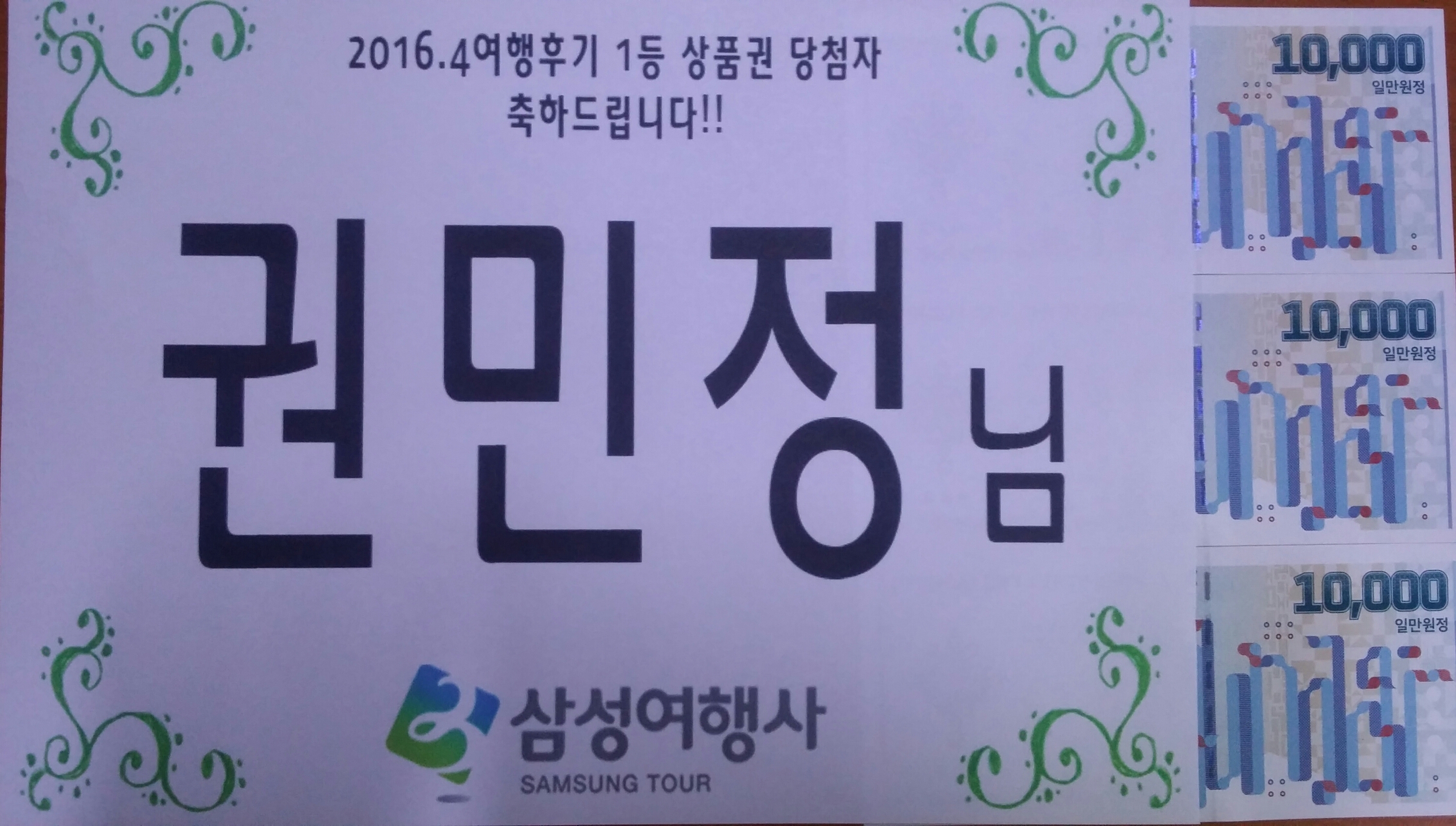 영화표는 여행후기 등록 당시 핸드폰으로 보내드립니다.