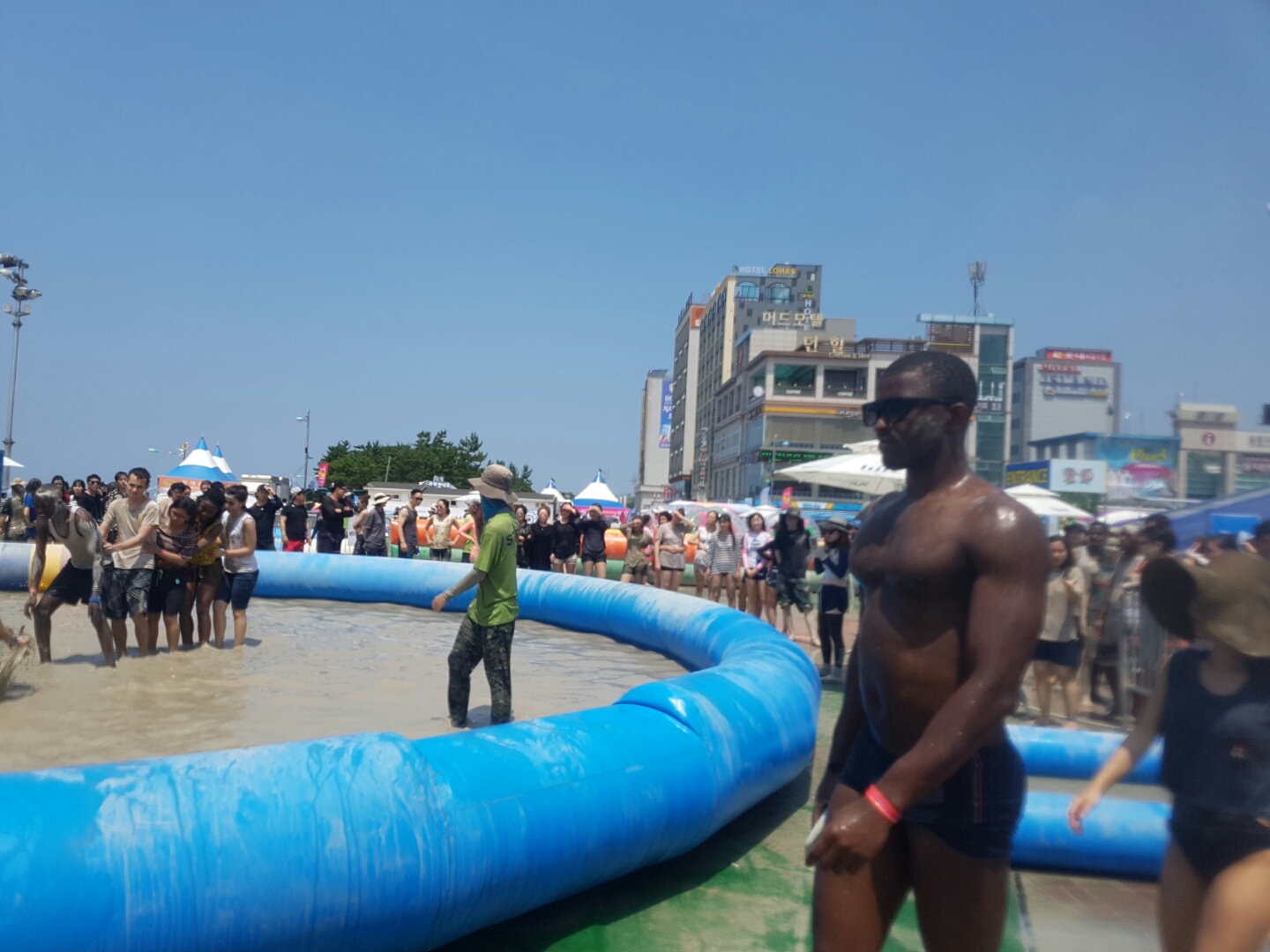보령머드체험박물관 쪽에서 내렸는데 생각보다 머드축제장은 멀어서 조금 당황했어요 걸어서 15분정도 걸린 것 같아요.