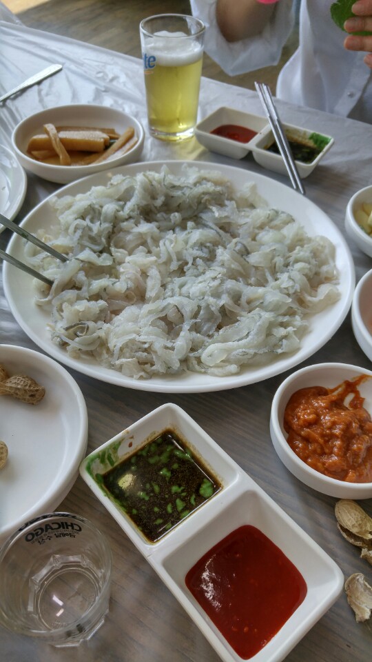 예쁜 신수진 가이드님의 친절한 설명과 함께 출발했습니다.동해안 최대 규모의 포항 죽도시장에 도착했고 장바구니를 받고. 오징어와 쥐포로 장을 보고 세꼬시횟감을 고르고 2층 전망좋은 자리를 잡고 맛나게 점심을 먹었습니다. 39도의 폭염에도 즐거운 맘으로 다음 여행지로 향했고 짙푸른 들판을 지나 동해안 해변가를 한참달려 동와곶, 생김새가 말갈기와 같다고하여 장기곳으로도 불리는 곳에 도착했습니다. 2001년 12월 호랑이 꼬리라는 뜻의 호미곳이라는 이름으로 바뀌었다고합니다. 바다와 육지에 각각 하나씩 손이 있었는데 그래서 이것을 "상생의 손"이라 부른다고합니다. 정신없이 멋진 배경으로 사진을 찍고 바다를 바라보는 멋진 카페에서 커피를 마사며 더위를 식히고 힐링의 시간을 가졌습니다. 다시 차를 달려간곳은 일본인이 조선으로 와서 살았던 곳으로 일본인 가옥거리로 포항시가 지정한 구룡포근대화거리인데 가옥이 잘조성되어있었고 모형우체통도 있었습니다.또 하나의 역사의 현장을 문화해설사의 설명을 통해 잘 들을수있는 시간이었습니다. 오늘 세친구의 첫여행이 정알 편하고 즐거웠습니다. 버스에서 내릴때 가이드님과 하이파이브를 나누며 다음 여행을 기약했습니다. 수고많으셨고 감사합니다~~~