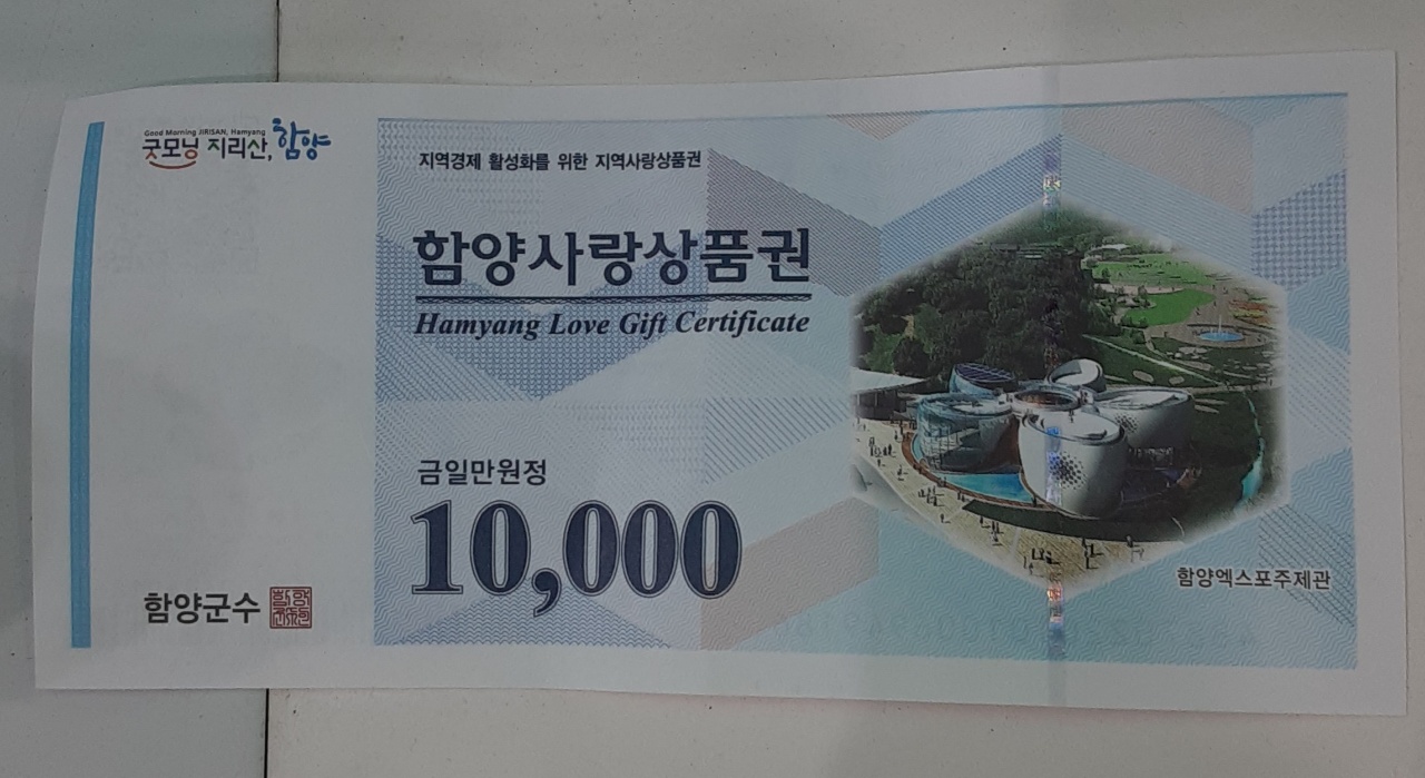 상품권 2장 받아서 한장은 곶감을 구입하고