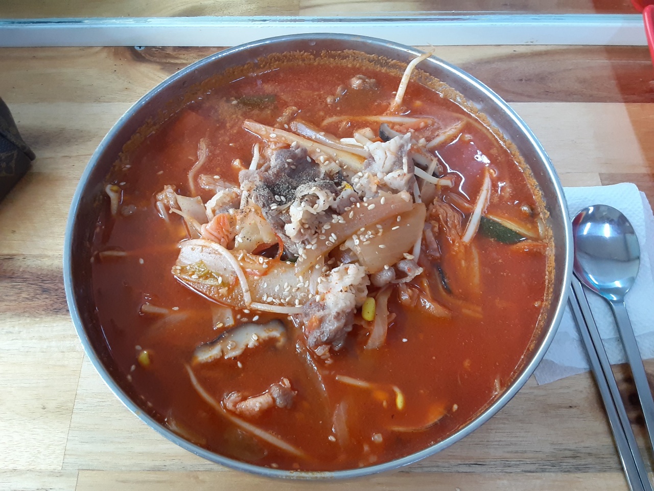 한장은 교동짬뽕반점에서 차돌박이 짬뽕을 먹었습니다 9천원입니다. 면만 먹으면 허기질까 차돌박이 섞인걸로 선택했습니다.