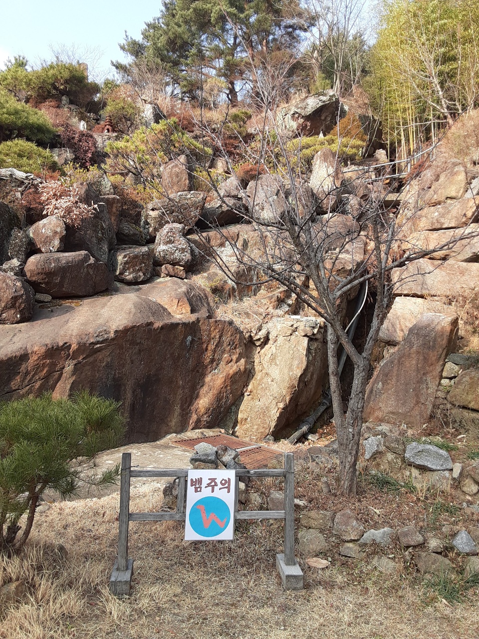 서암정사 구석에 가면 뱀주의하라는 안내문이 있습니다. 얼른 도망 왔습니다