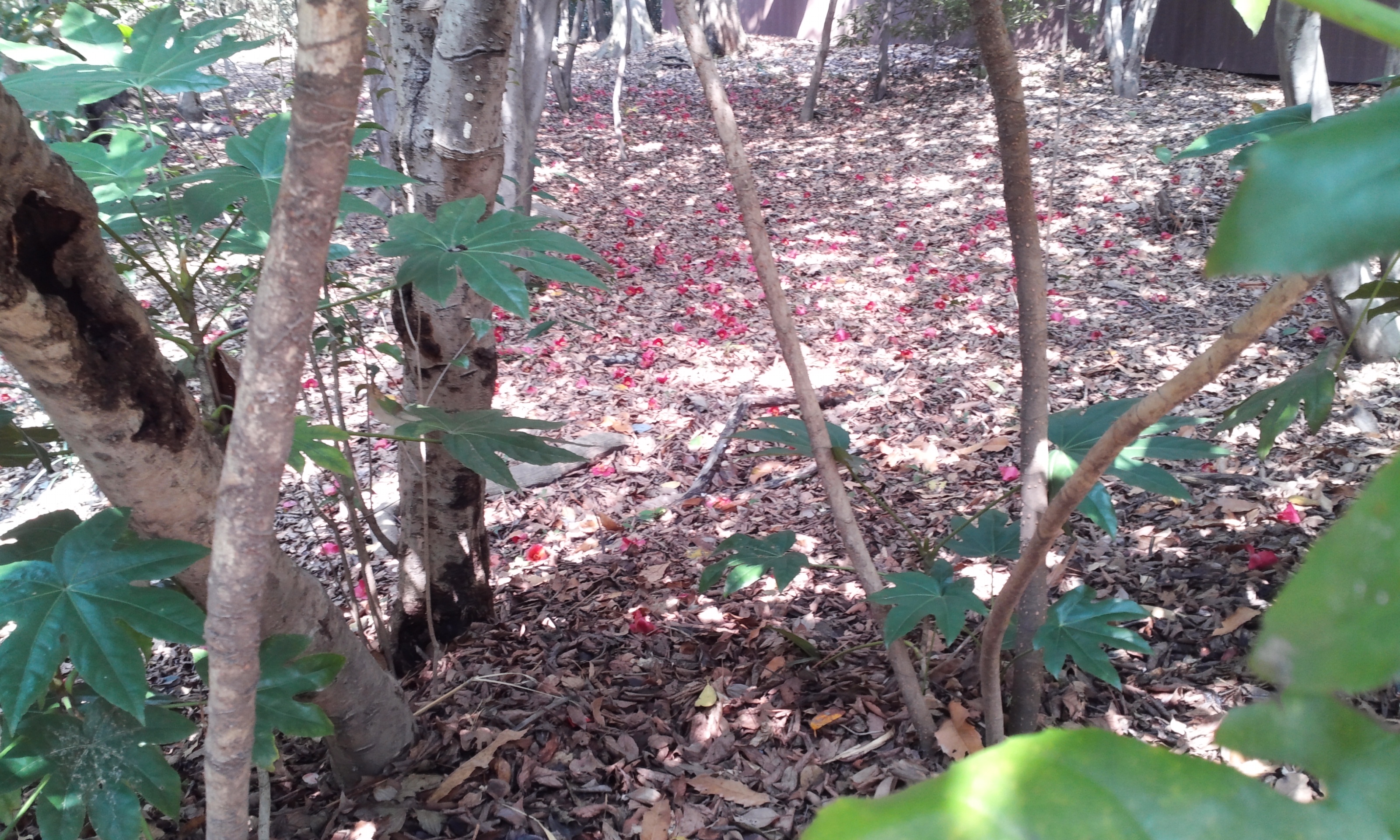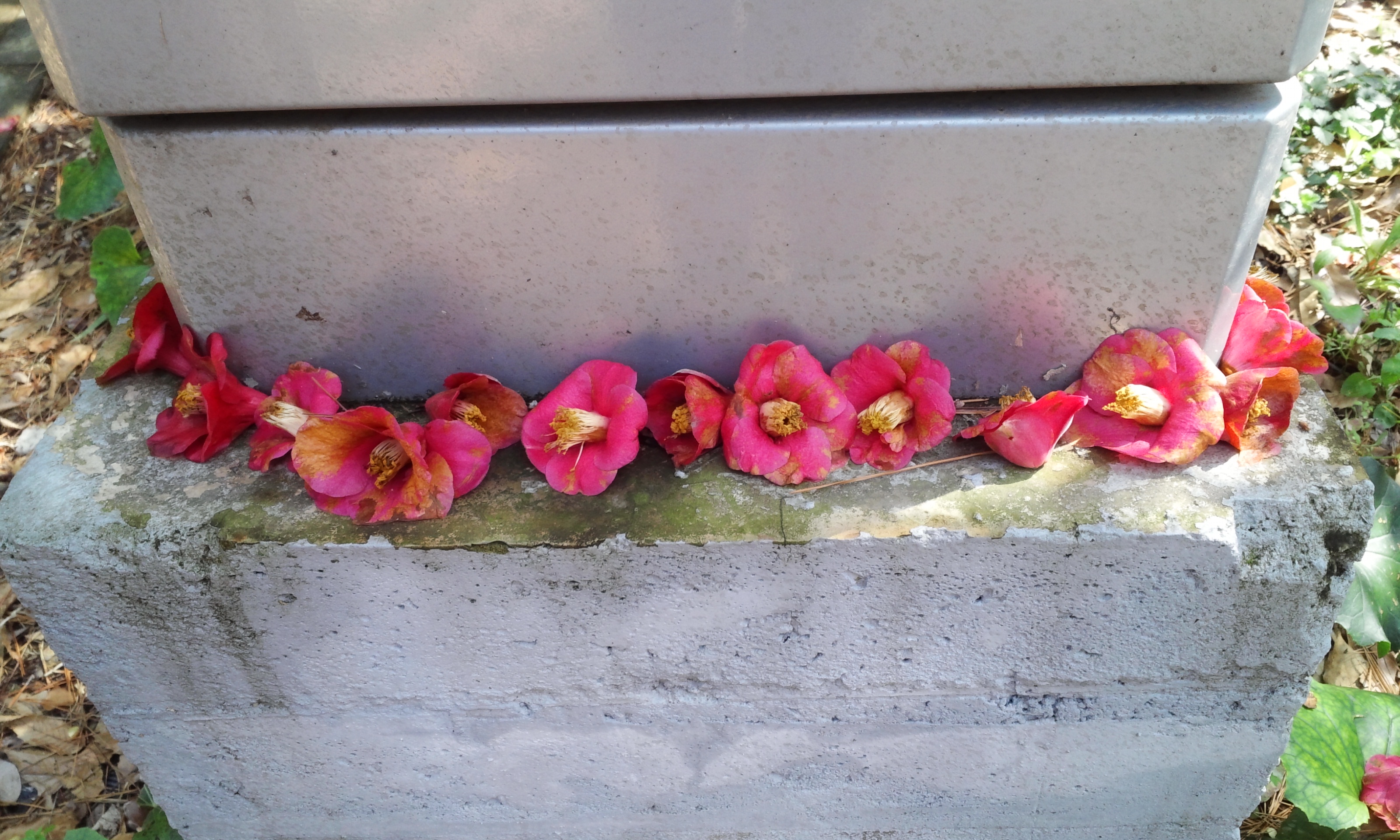 동백이 통꽃이라 꽃한송이 통째로 떨어져서 땅에서도 여전히 예쁜모습을 유지하는 것 같아요.