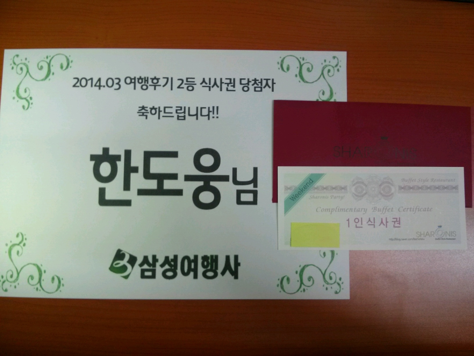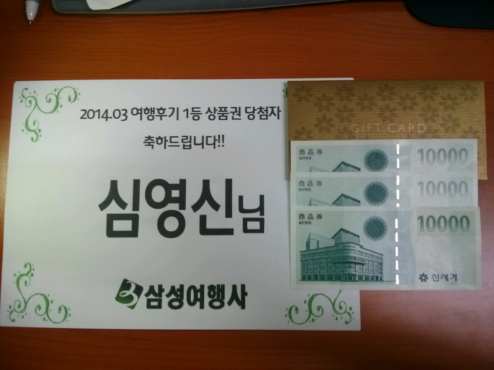 안녕하세요. 삼성여행사입니다~ ^-^ 추웠던 날을 뒤로 하고 어느덧 따뜻한 봄날이 찾아왔습니다. 눈여행과 봄꽃여행이 함께였던 3월~ 많은 후기를 남겨주셔서 진심으로 감사드립니다. 여행후기 당첨자를 선정할때 실무자 여러명이 제일 많은 선택을 받은 후기를 선정하고 있는데 달이 지날수록 쟁쟁하신 분들이 너무 점점 선정하기가 어려운 것 같습니다~ 여러 의논 끝에 선정된 분들은 아래와 같습니다. ^-^ ★ 1등 백화점 당첨자 : 심영신님 010-8488-**** ![]() ★ 2등 식사권 당첨자 : 한도웅님 010-6257-**** ![]() ★ 3등 영화권 당첨자 : 신승민님(60)-정경화님(89)까지 작성하신 모든 분~ 당첨되신 모든 분들 진심으로 축하드립니다. 상품권, 식사권은 우편등기를 이용해 자택으로 보내드리며 영화표는 여행후기 등록 당시 핸드폰으로 보내드립니다. 감사합니다. ^-^ |