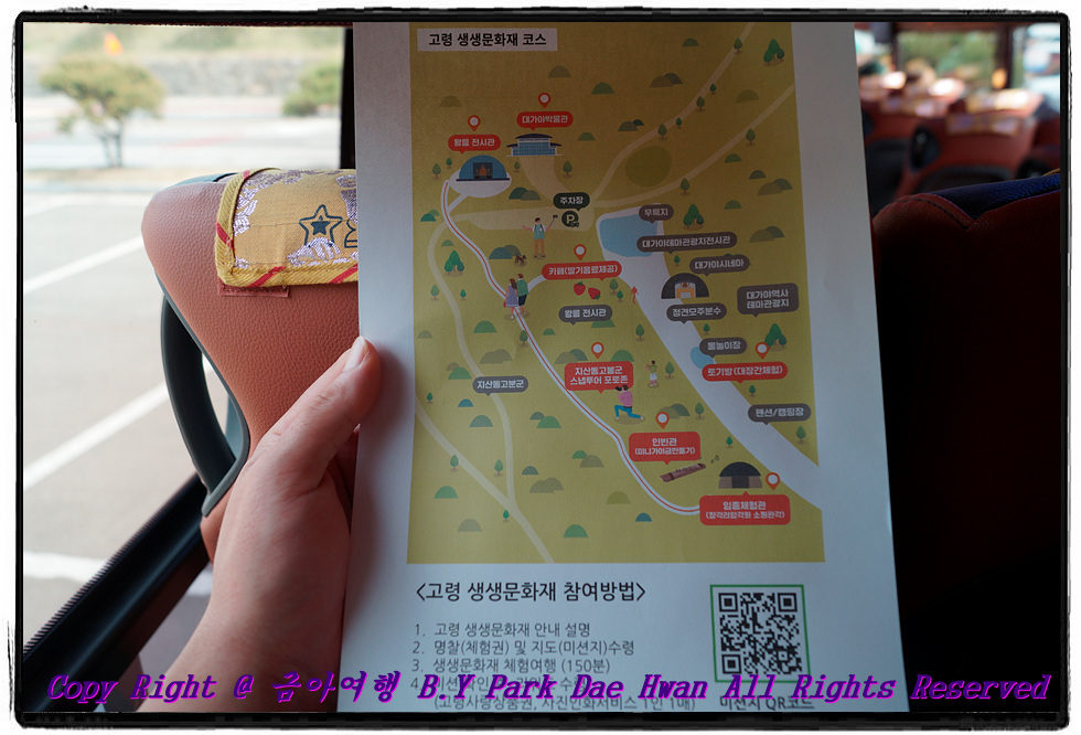 법원 건너 농협을 출발하여 반월당역, 두류역 광장코아까지 경유 후 가이드님께서 일정표와 뺏지를 나누어 주셔서 "성서 홈플러스에 타시는 분이 없으신가?" 생각했는데 제 예상대로 성서홈플러스에서 탑승하시는 분이 없으셨습니다. 삼성여행사를 통해 여행을 다니면서 성서홈플러스 탑승객이 없는 경우는 이번이 처음이었고 여행객도 부모님 따라온 어린아이 승객과 저를 포함해 총 17명의 여행객을 태우고 고령으로 출발하였습니다.