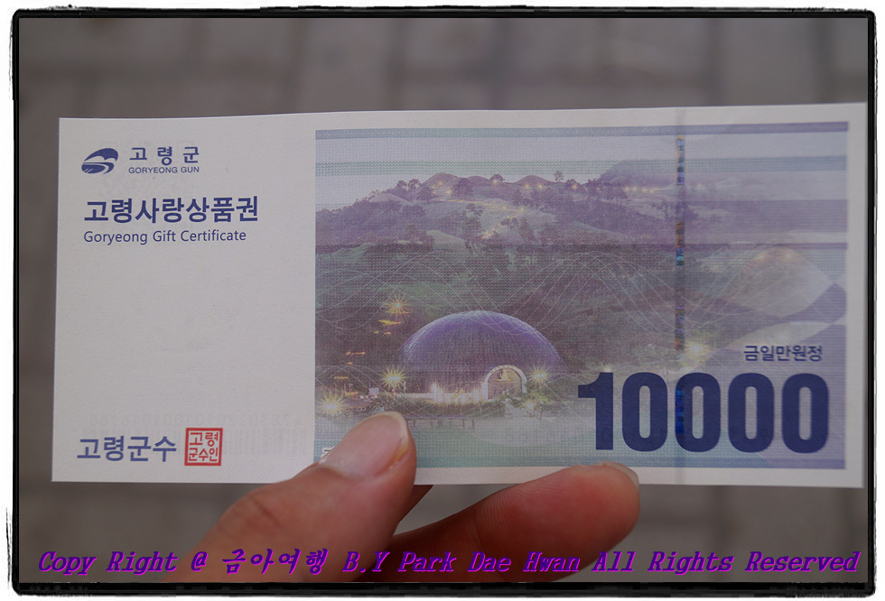 고령대가야시장 출발하기 전 가이드님께 고령사랑상품권 1만원권을 받았으며 이 상품권으로 점심식사 해결하기로 하였습니다. 상품권까지 지급해줘서 점심식사도 내가 먹고싶은 음식으로 식사할 수 있으니 이 점이 상당히 좋았습니다.