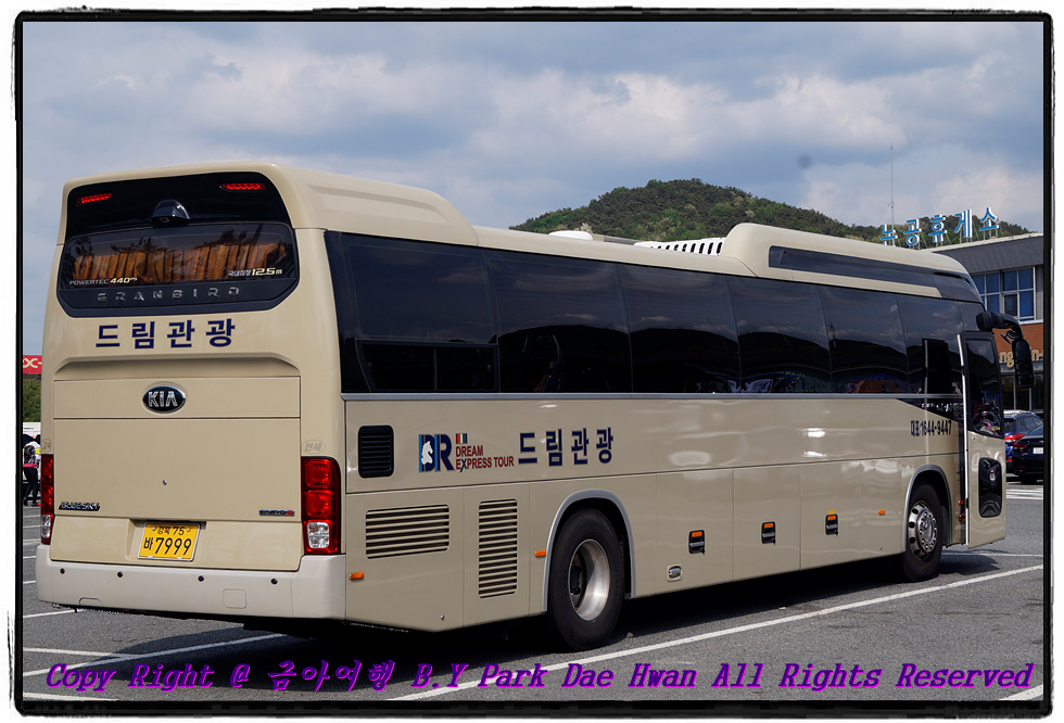 05월 08일 아침 탑승장소인 "법원 건너 농협" 에 도착하였습니다. 이 날 탑승할 버스로 드림관광 7999호 버스가 대기중이었으며 가이드님은 이지은 가이드님께서 수고해주셨으며 안전운행으론 드림관광 박호상 승무사원님께서 수고해주셨습니다.
