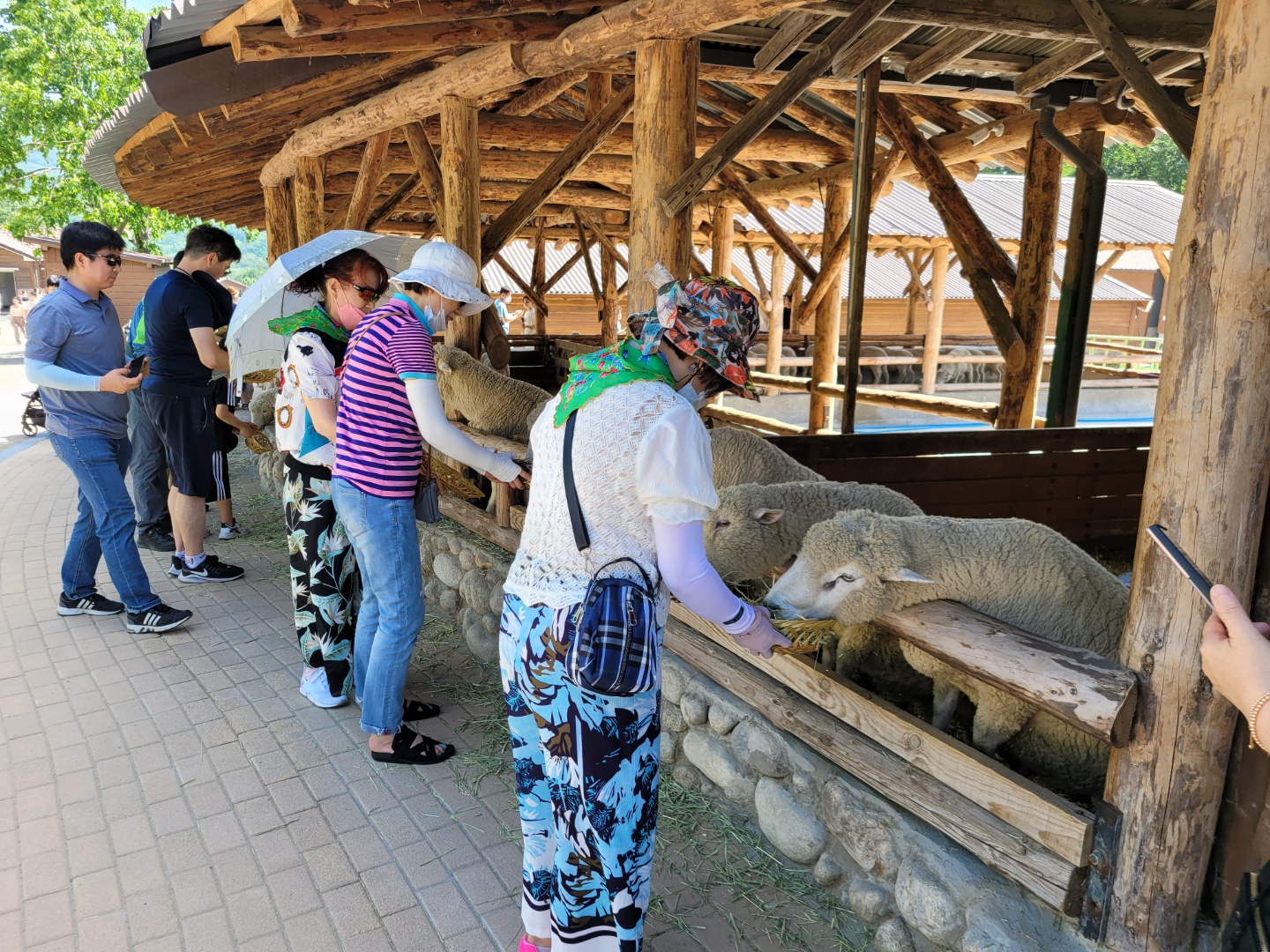 황태구이정식으로 맛있는 점심을 먹고 대관령의 시원한 바람속에 양떼목장 길을 산책하며