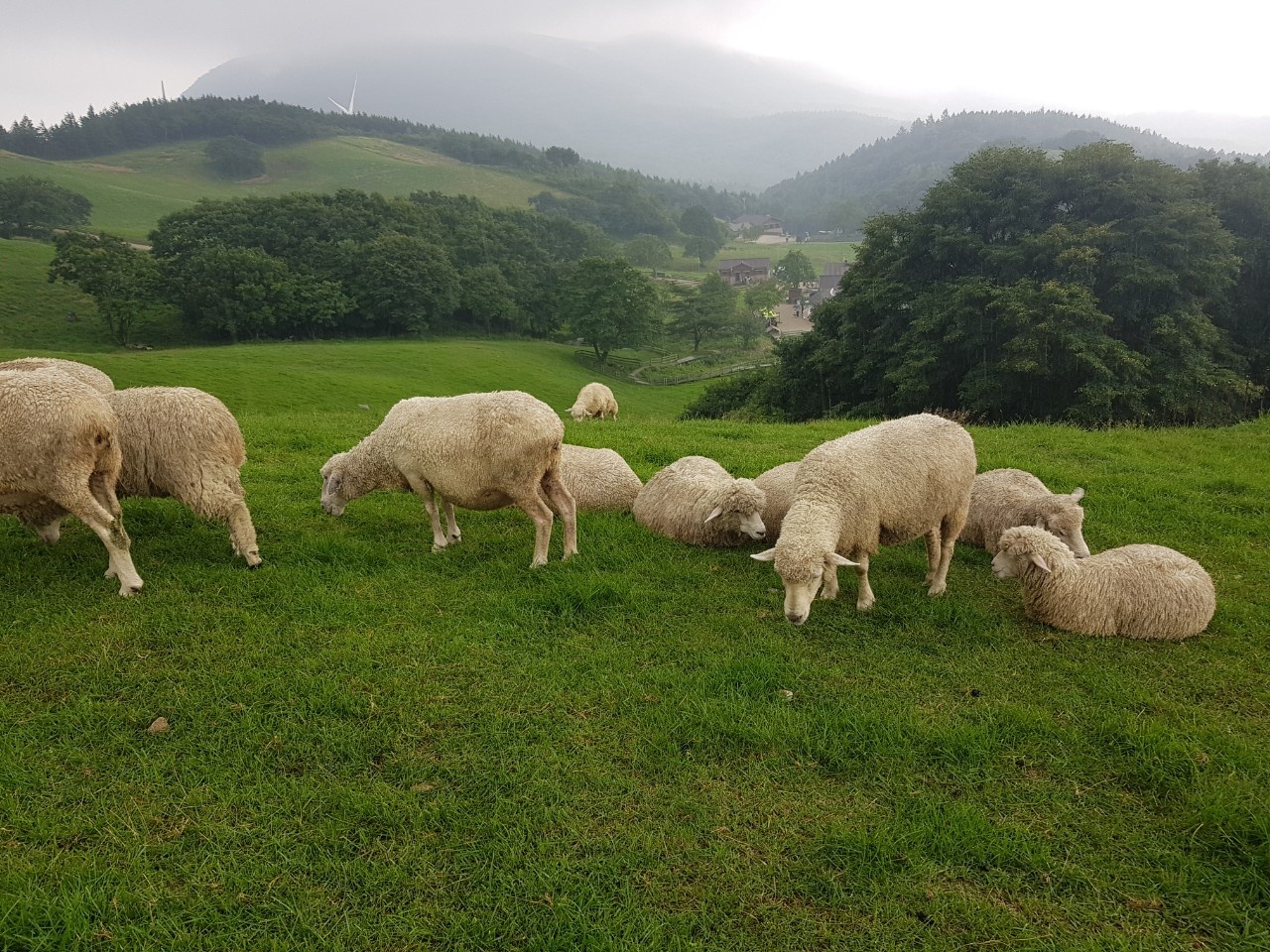 든든한 점심을 먹고 나서 대관령양떼목장으로 갔다. 풍경이 초록초록해서 눈이 다 시원하였다. 양들에게 건초를 주고 산책로를 따라 산책을 할려니 갑자기 소나기가 내렸다. 비가 오는 대관령 풍경을 한폭의 수채화 같았다.
