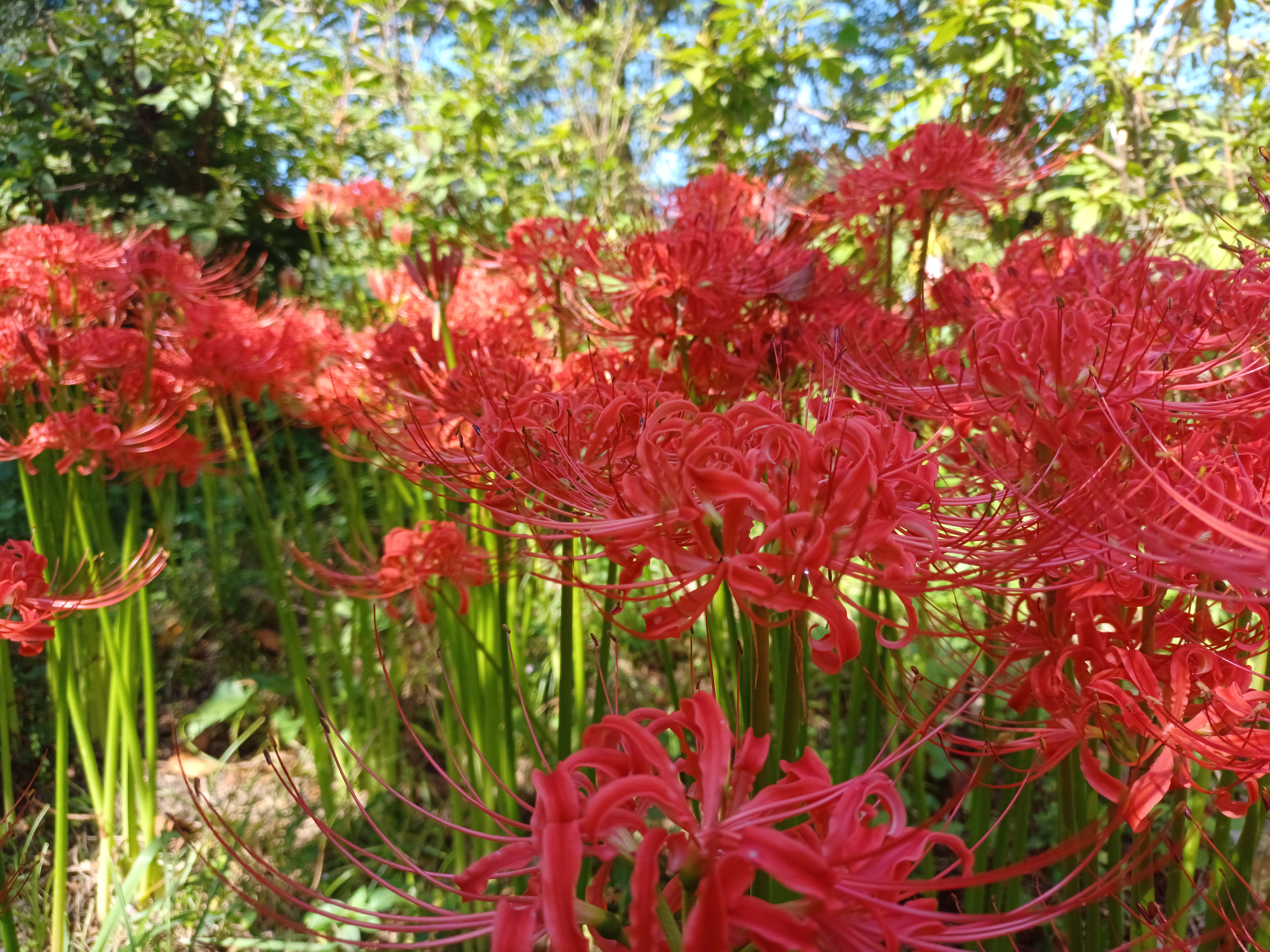 도솔산 북쪽 기슭에 있는 선운사 올라 가는 산자락과 가는 곳곳에 피어 있는 9월의 꽃무릇 8월에 피는 꽃은 상사화라고 부르고 색이 약간 분홍색에 가까우며 9월에 피는 꽃무릇은 붉은 색이 황홀할 정도입니다. 이번 주도 예쁘지만 다음주는 더욱 더 많이 피어나 화려함을 뽐낼 것 같습니다. 빼어난 자연 경관과 소중한 불교 문화재들은 지니고 있는 선운사이지만 이곳의 아름다음을 더욱 더 빛나게 하는 것이 꼿무릇이 피는 가을에 정점을 이루고 있다는 것입니다.