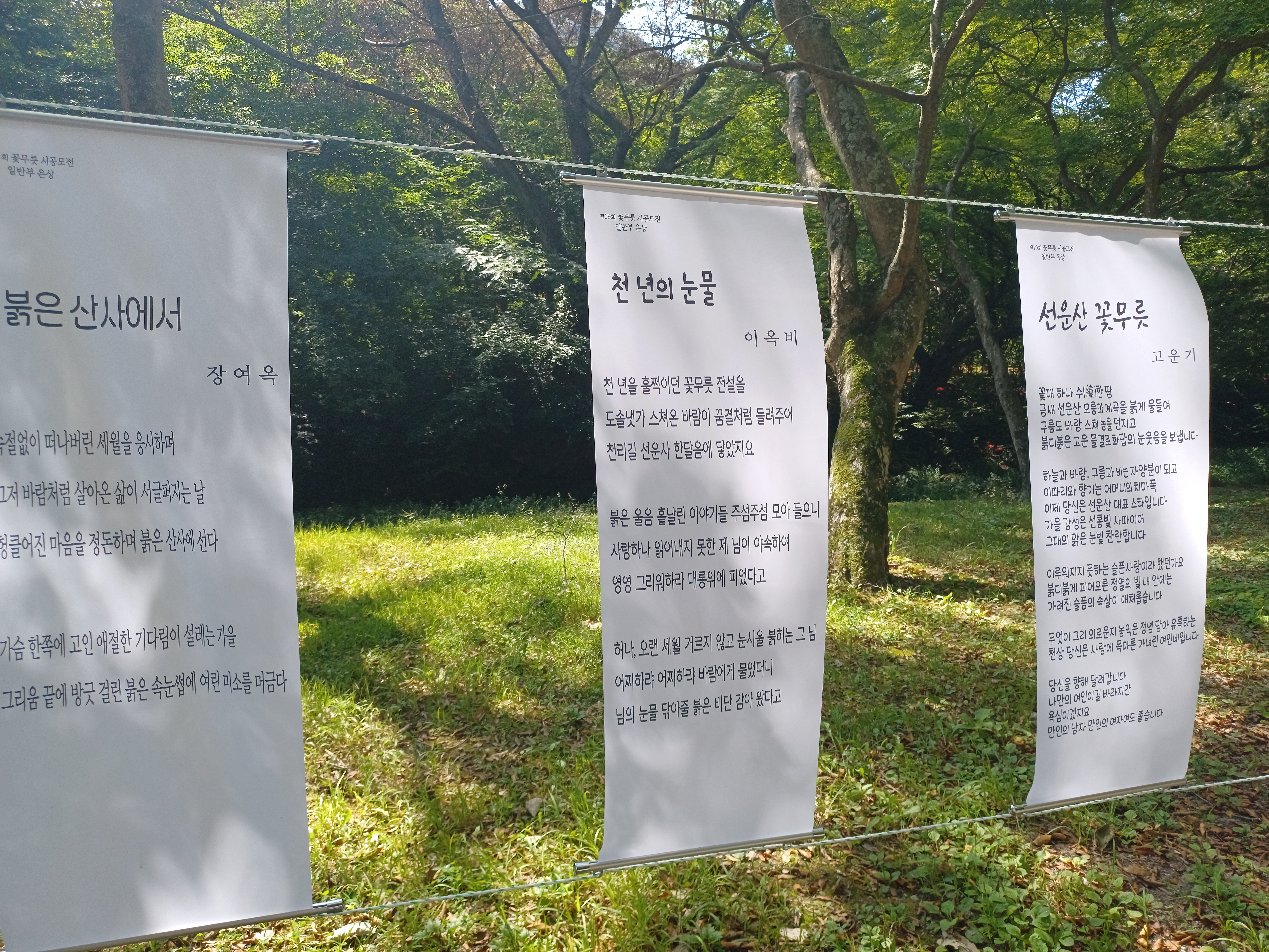9월 9일부터 9월 30일까지 한국 문인협회 고창지부에서 이렇게 시화전을 전시하고 있습니다. 올라 가는 길에 시도 하나씩 읽어 보는 재미를 누리시면 됩니다