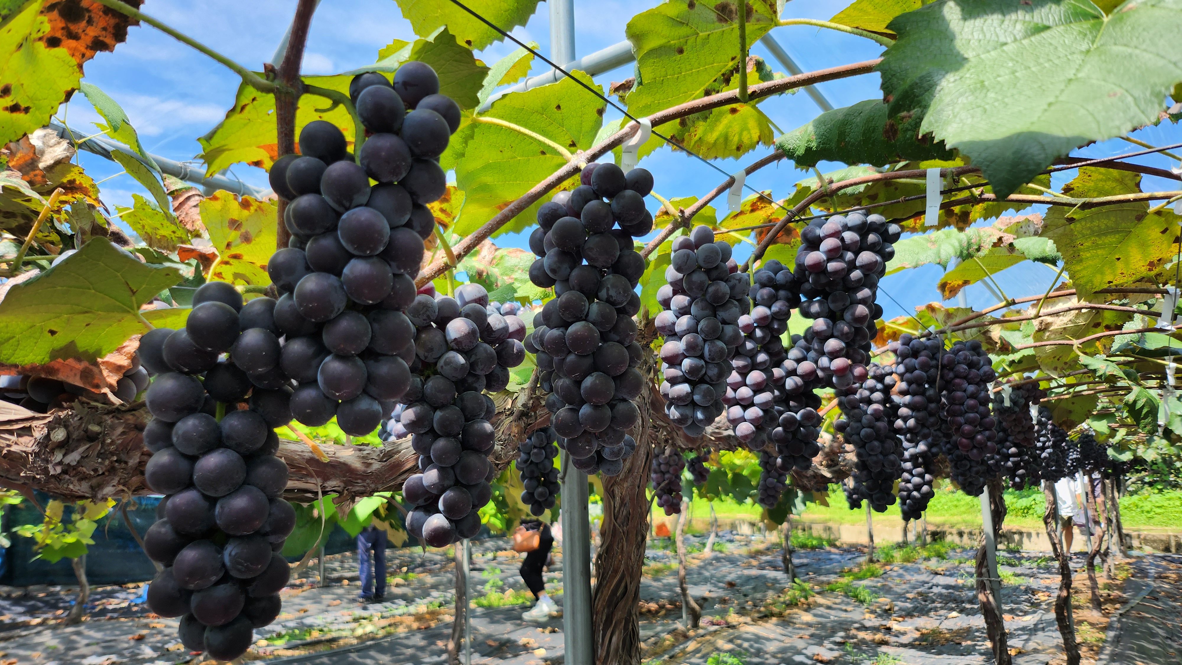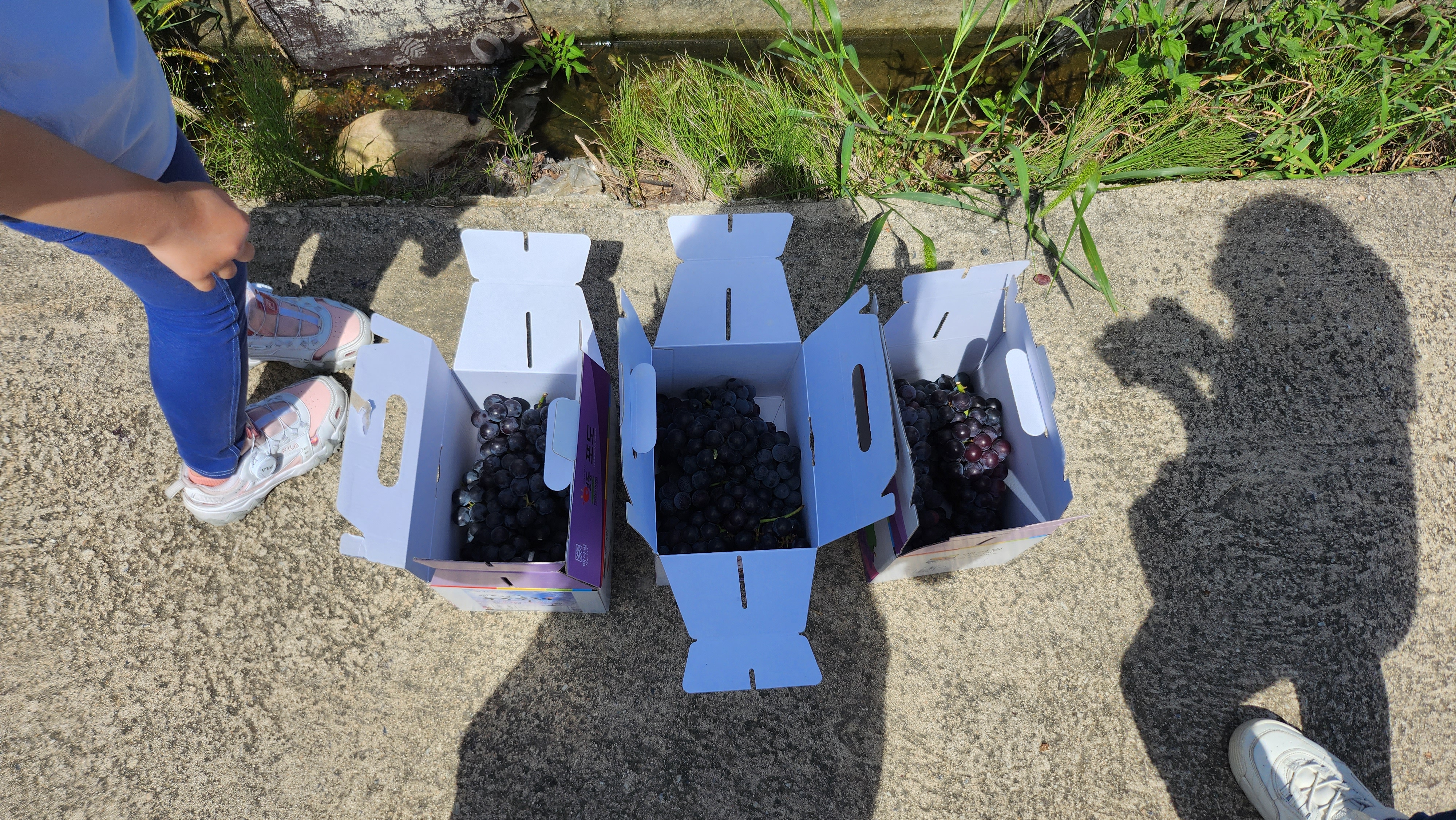 작은 아이는 키가 작아 그냥 내가 잘라서 상자에 담아 줄까하다가 이것도 다 경험이겠다 싶어 직접 포도를 고르고 포도 근처까지 안아 올려줘서 직접 딸 수 있도록 했는데 ㅎㅎ 작은 손으로 가위를 잡고 부들부들 떨면서도 포기하지 않고 포도를 따는 모습이 꽤 귀여웠습니다 ㅎㅎ