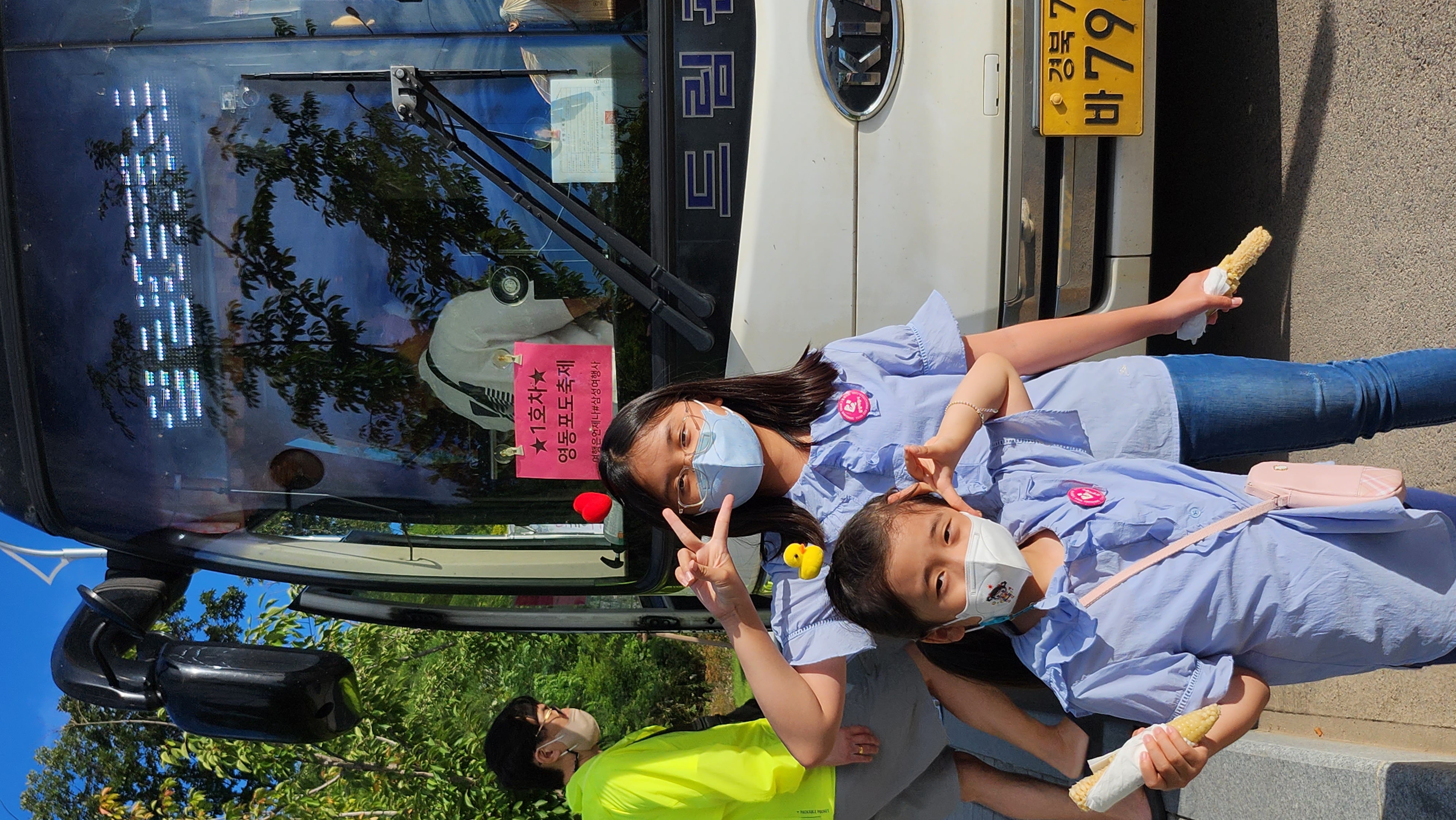 제시간에 버스가 도착해서 출발합니다~ 버스를 타고 자리에 앉아 안전벨트를 하고 아이들에게 과자를 쥐여(?)줍니다. ㅎㅎ 조용하고 즐겁게 여행의 첫 시작을 하기 위해 간식만큼 좋은 건 없겠죠? ㅎㅎ