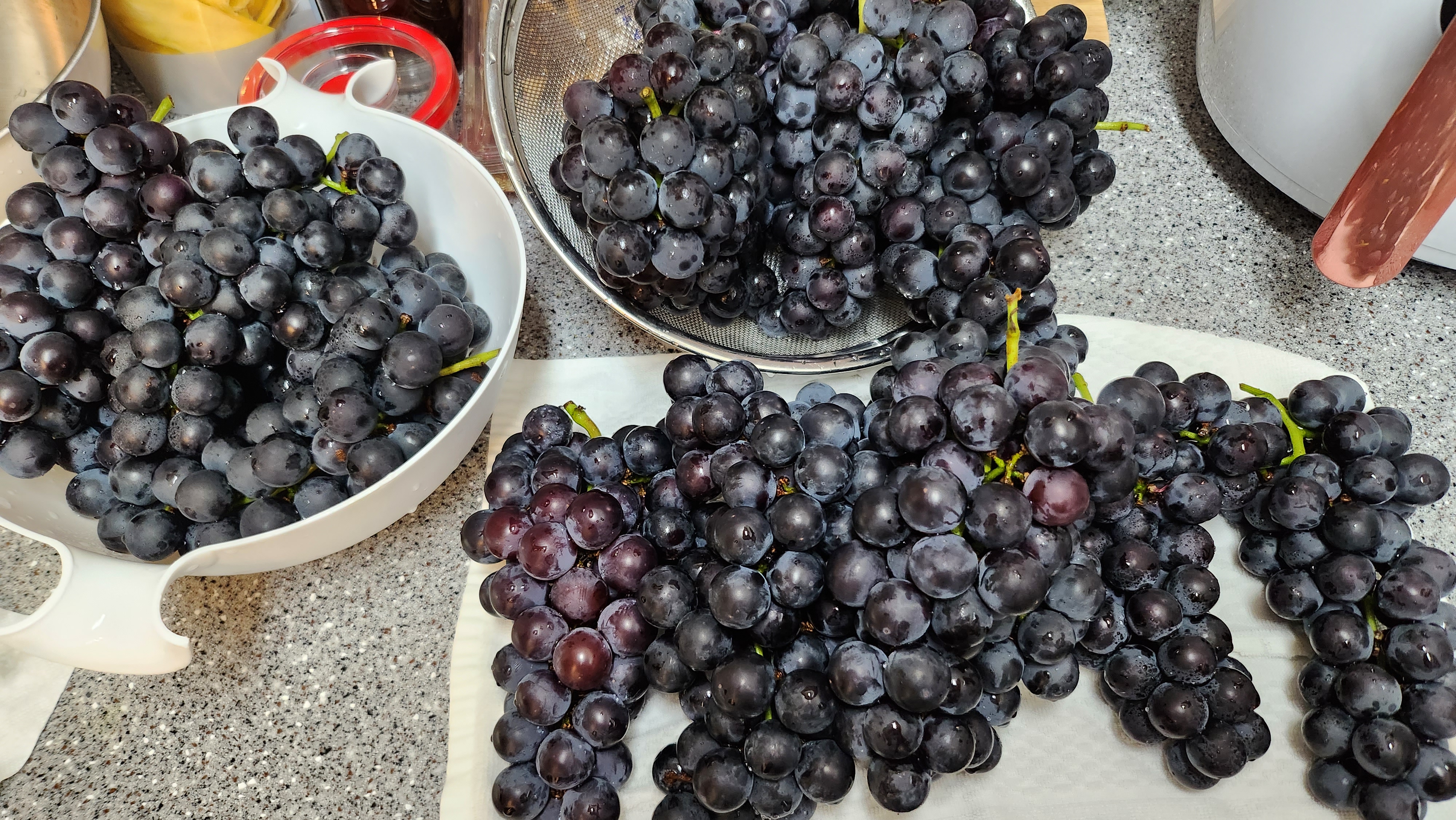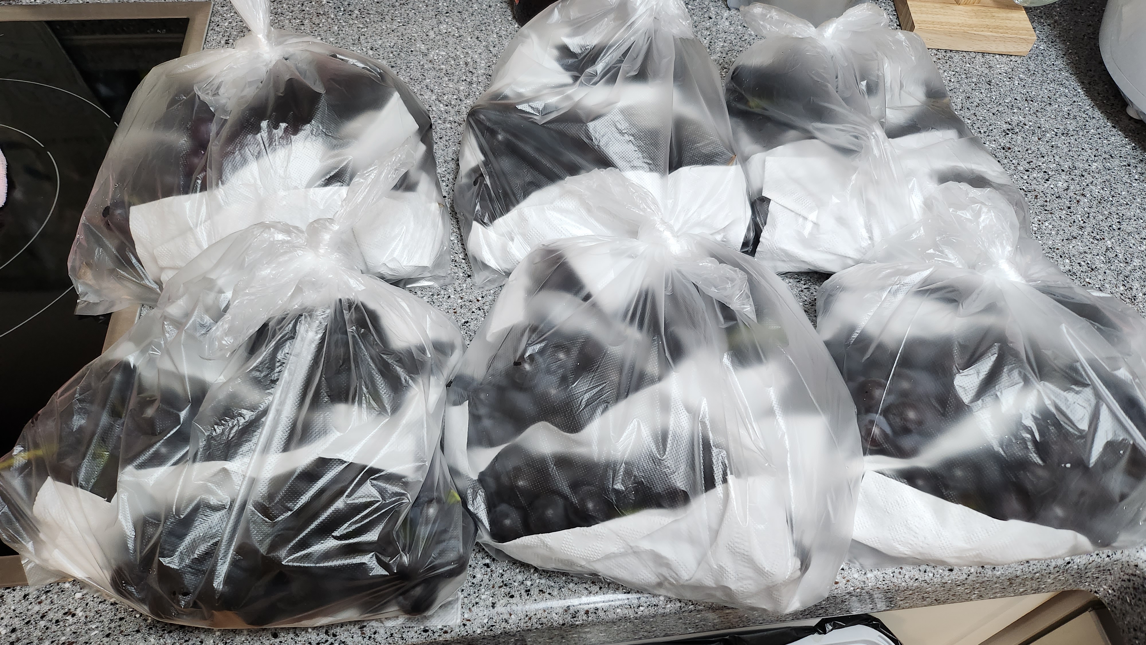 식초에 담가 두었다가 깨끗하게 헹궈서 3송이씩 담아보니 6봉지가 나오네요 왕~ 대박! 진짜 많네용 이걸 언제 다 먹나... ㅎㅎ 행복한 고민이네용 근데 포도를 씻다가 느꼈는데 뭔가 이상합니다 이 포도! 그동안 마트서 포도를 사서 많이 씻어봤지만 이런 탱글하고 단단한 포도는 만져보질 못했는데 포도 알알이 탄력이 장난이 아닙니다. 왕~ 싱싱해! 이게 그 산지에서 바로 가져온 특별함일까요? 가이드님이 이 포도는 엄청 달고 맛있는 대신 상처가 잘 날 수 있는 품종이라 판매는 못하는 포도라고 말씀하신 게 얼핏 기억나는데 아닌 것 같습니다. 너무 탱글 합니다! 결정적으로 너무 새콤하지도 않고 너무 물 같지도 않고 새콤달콤 너무 맛있어요! 내년 영동포도 축제도 꼭 다시 가야겠습니다!