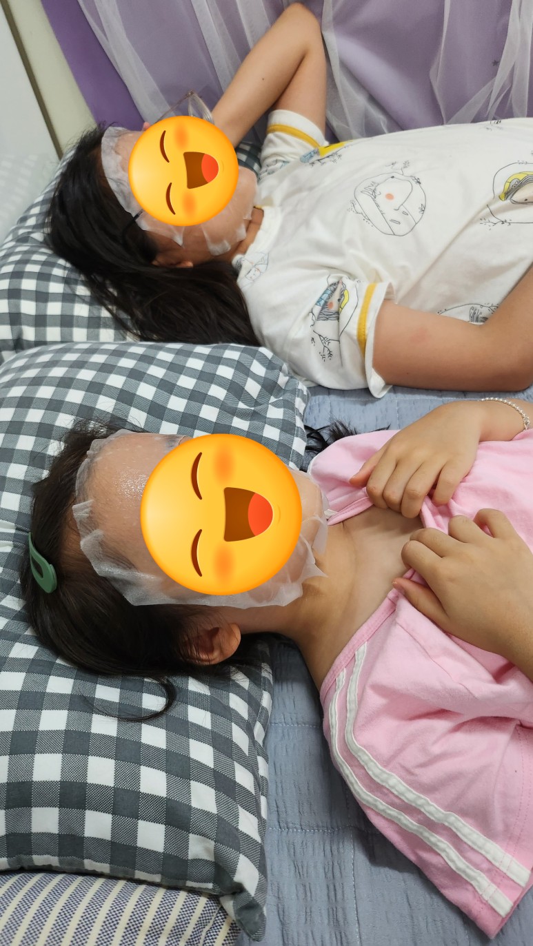 버스에서 받은 마스크팩으로 마무리! (아이들의 프라이버시를 위해 스티커처리! ㅋㅋㅋ) 아이들이 써도 문제없는 순한 마스크팩인듯 합니다. 촉촉하니 좋네요~