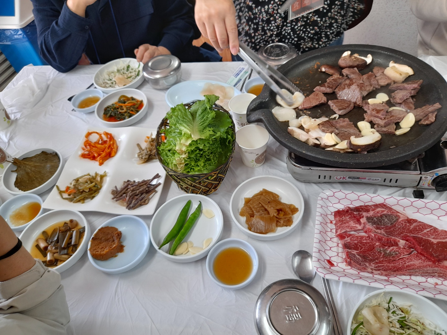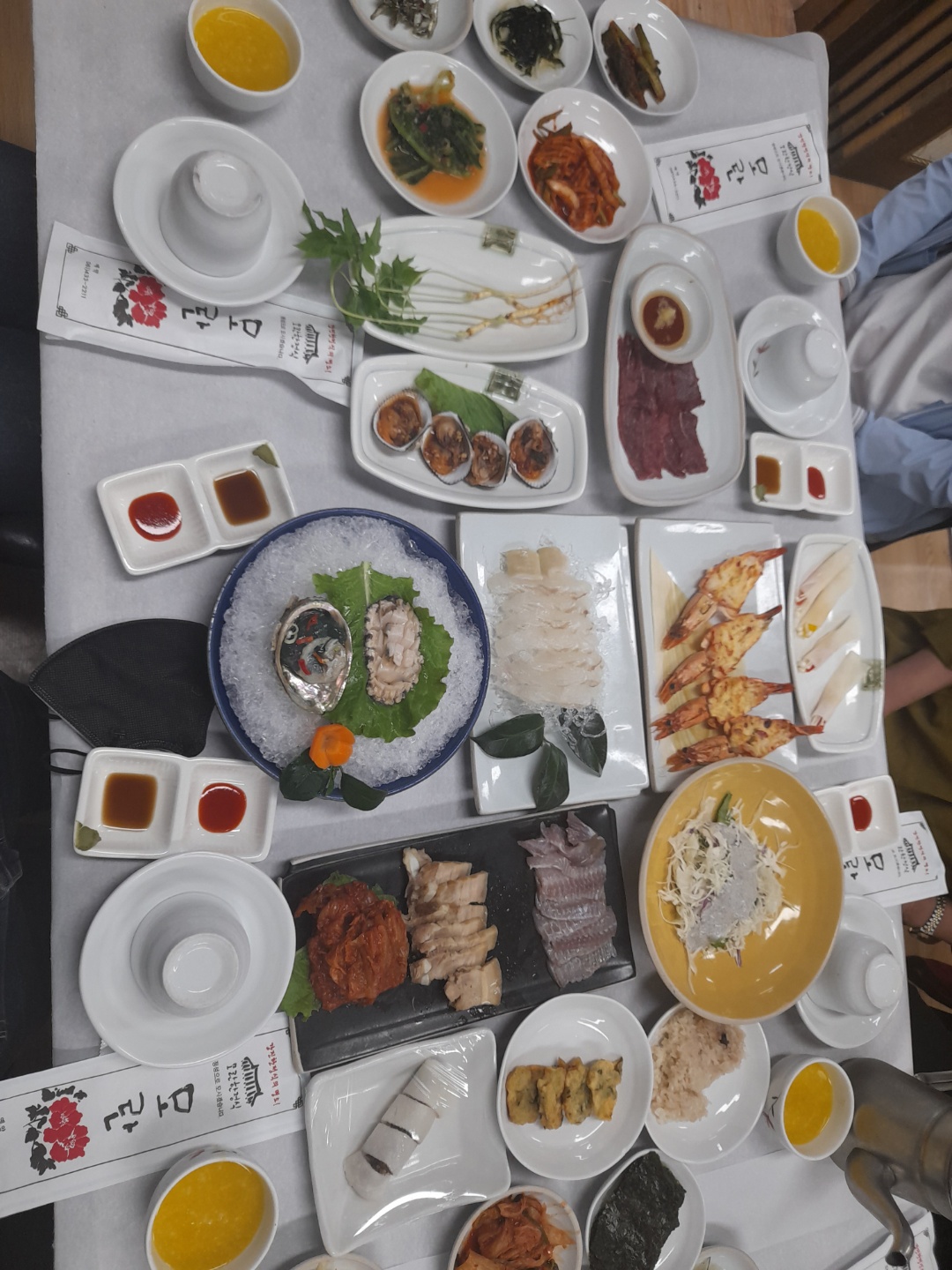 오전 8시부터 출발이라 여유 있게 집을 나섰다. 버스타야할 인구들(?) 다 태우고 이제 두둥실 대구를 떠남! 휴게소 2개를 거쳐 첫번째 먹거리장소는 장흥토요시장 내에 있는 장흥삼합집! 등심과 표고버섯은 너무 좋았으나 복어회를 떠올릴 정도의 투명한 관자는 좀 실망스러웠고 식당이 좁아서 솔직히 먹기 불편했음. 음료나 그런건 주문시마다 현금(카드 쓰려니 거부하시네?) 바로 결제해야 함. 암튼 배채우기 성공.