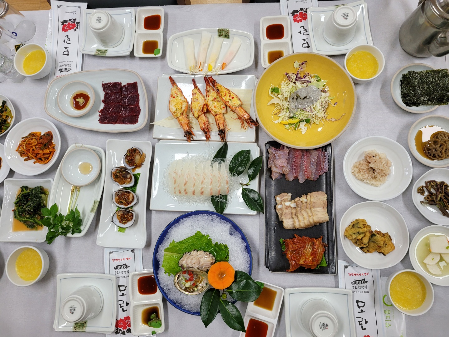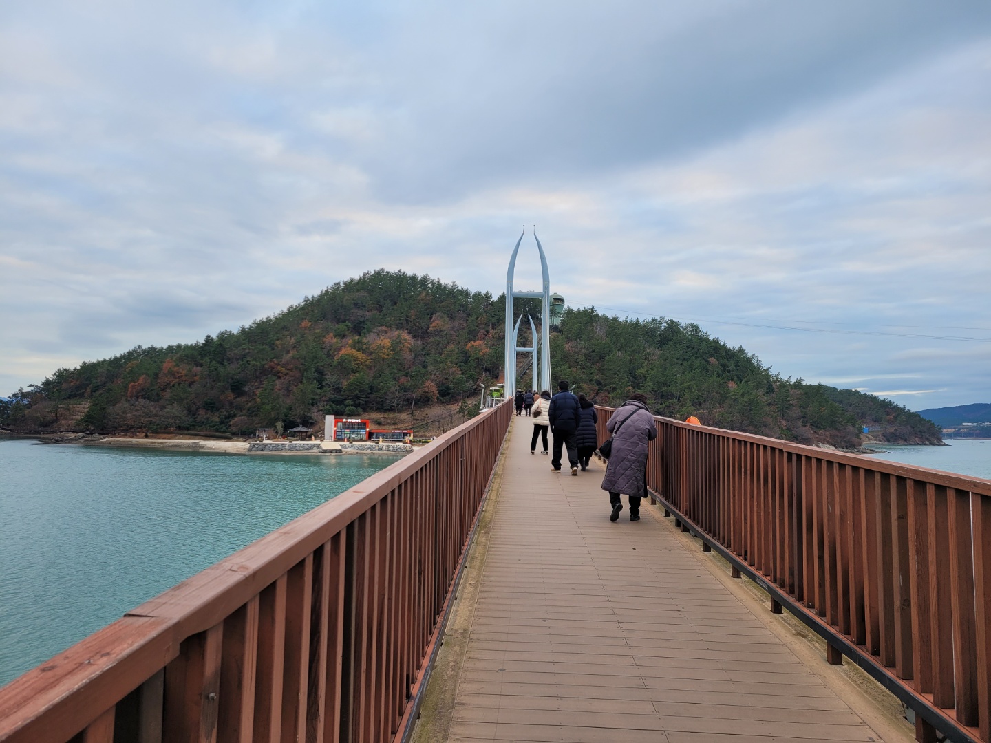 정남진 토요시장에서 장흥삼합(장흥한우+표고버섯+키조개)으로 점심을 맛있게 먹고 편백나무숲의 우드랜드에서 맑은 공기를 마시며 힐링을 한 후 고려청자박물관도 관람하였읍니다 저두주차장에서 출렁다리를 건너 망호주차장으로 가는 가우도 해변데크길은 마침 만조라 너무 낭만적이였으며 남도특한정식 큰상을 받으며 만찬을 즐기고 첫째날을 마무리 하였습니다 둘째날 아침 북어해장국으로 속을 달래고 물소리길, 동백숲길의 운치도 즐기면서 맑은 공기와 잘 보존된 대흥사를 둘러보고 정성도 드렸읍니다 케이블카를 타고 전망대에 오르니 차고 맑은 날씨속에 펼쳐지는 풍경이 너무 인상적이였으며 용궁해물탕으로 점심을 푸짐하게 먹은 후 도착한 강진만 생태공원에서는 AI 때문에 탐방로를 걷지 못한 아쉬움을 남기면서 1박2일 일정을 마무리 하였읍니다