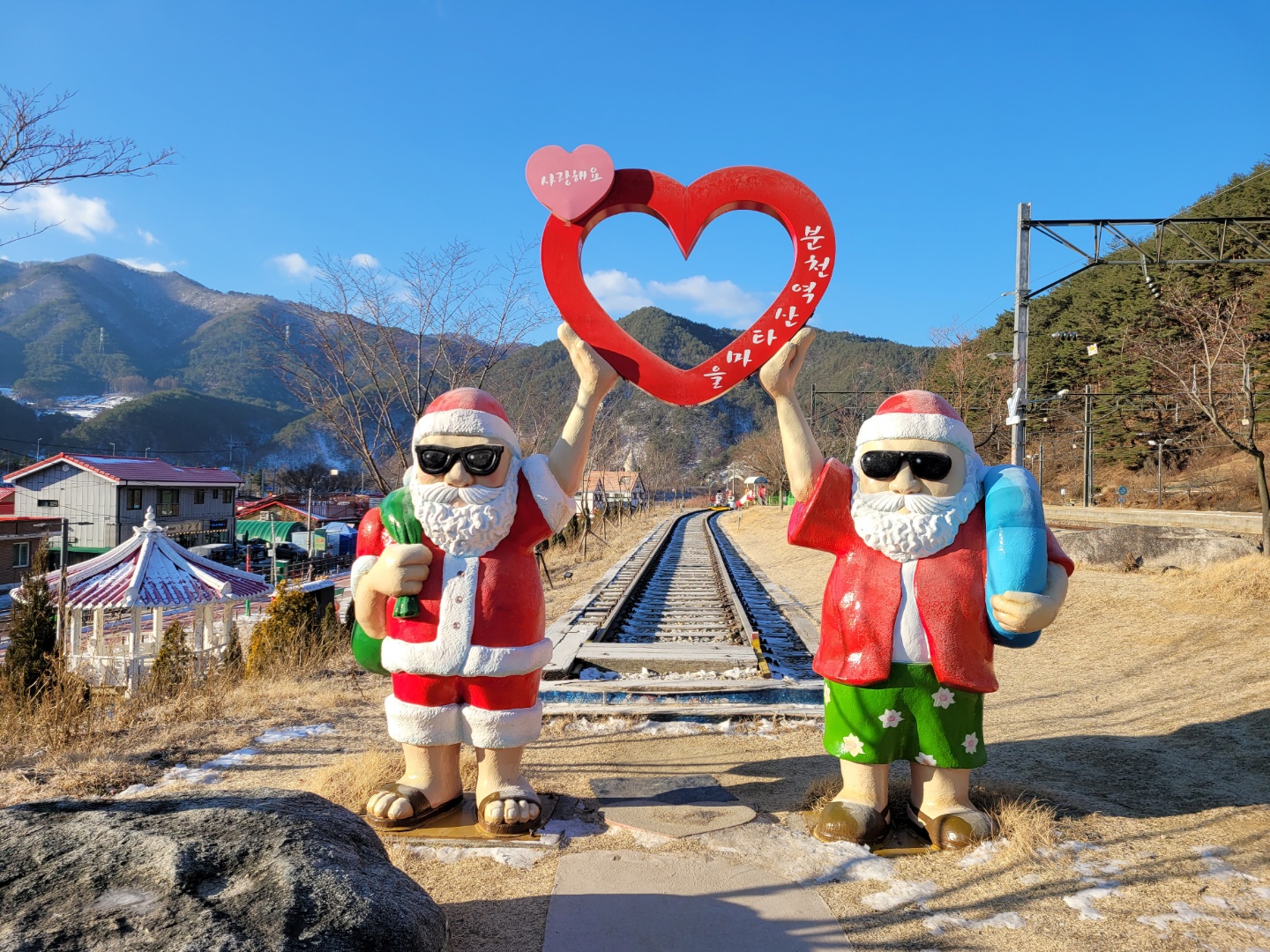 매서운 겨울날씨속에 분천역에 도착 산타마을을 구경하며 기념사진도 찍고