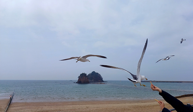 축제장 출구로 나오면 바다가 보이는데 갈매기들이 많았다.