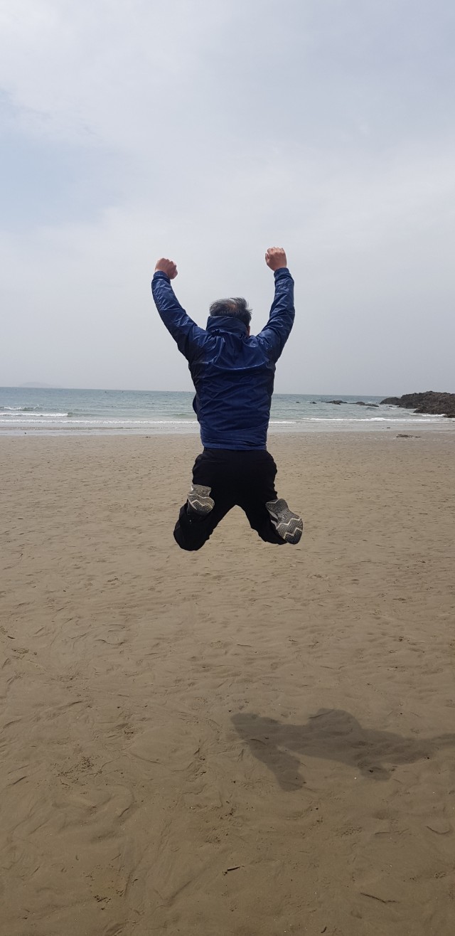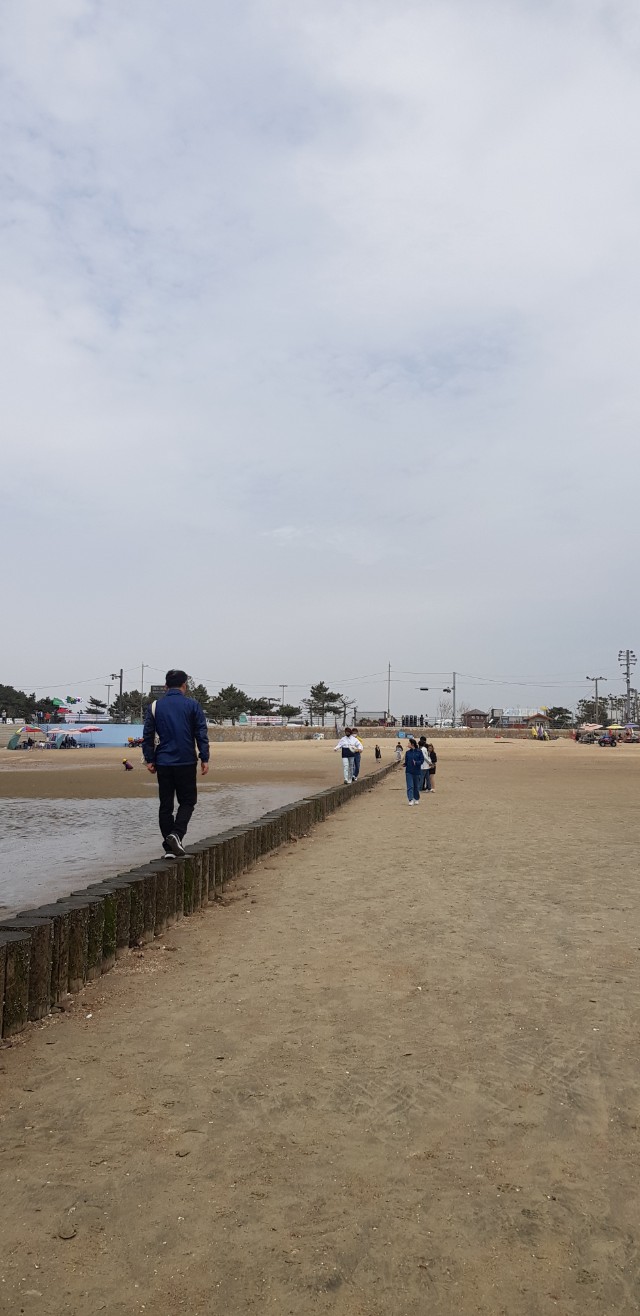 꽃지해변도 처음이라 조개껍질도 줍고 나무토막위로 걸으며, 폴짝 뛰는 모습을 사진에도 담고 색다른 경험을 했다.