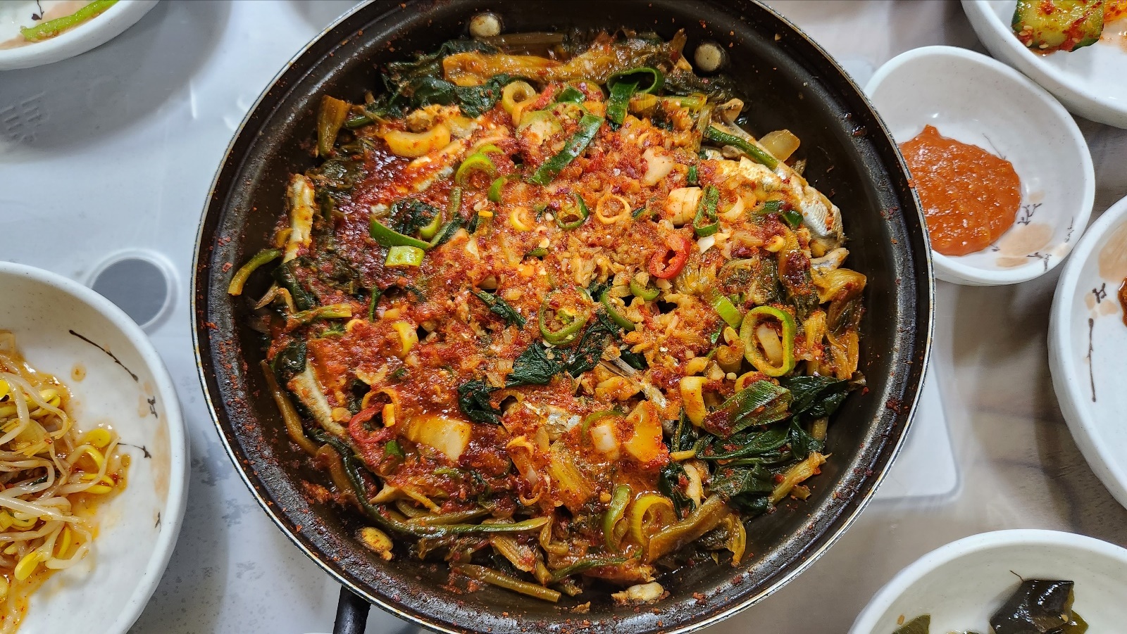 지족 멸치쌈밥거리에서 멸치쌈밥으로 점심을 먹었습니다. 멸치쌈밥은 처음 먹어봤는데 맛있었습니다. 계속 생각나는 맛 입니다