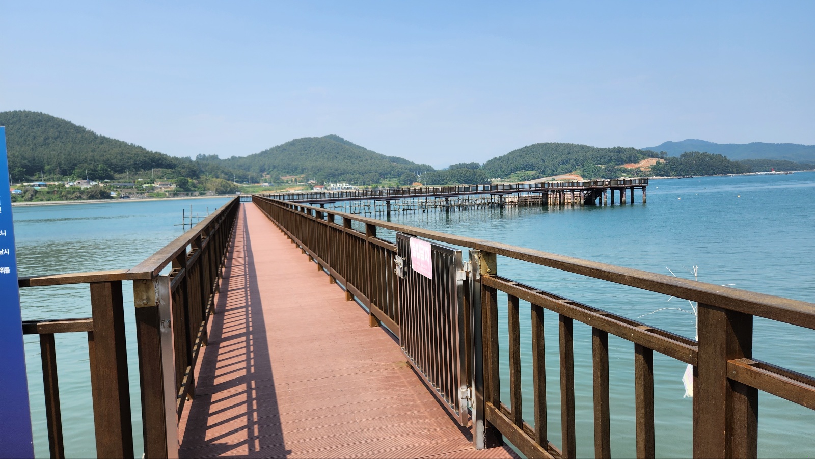 죽방렴 관람대 데크를 따라 이동하면 대나무로 만든 전통 멸치잡이 죽방렴을 관람 할 수 있습니다.