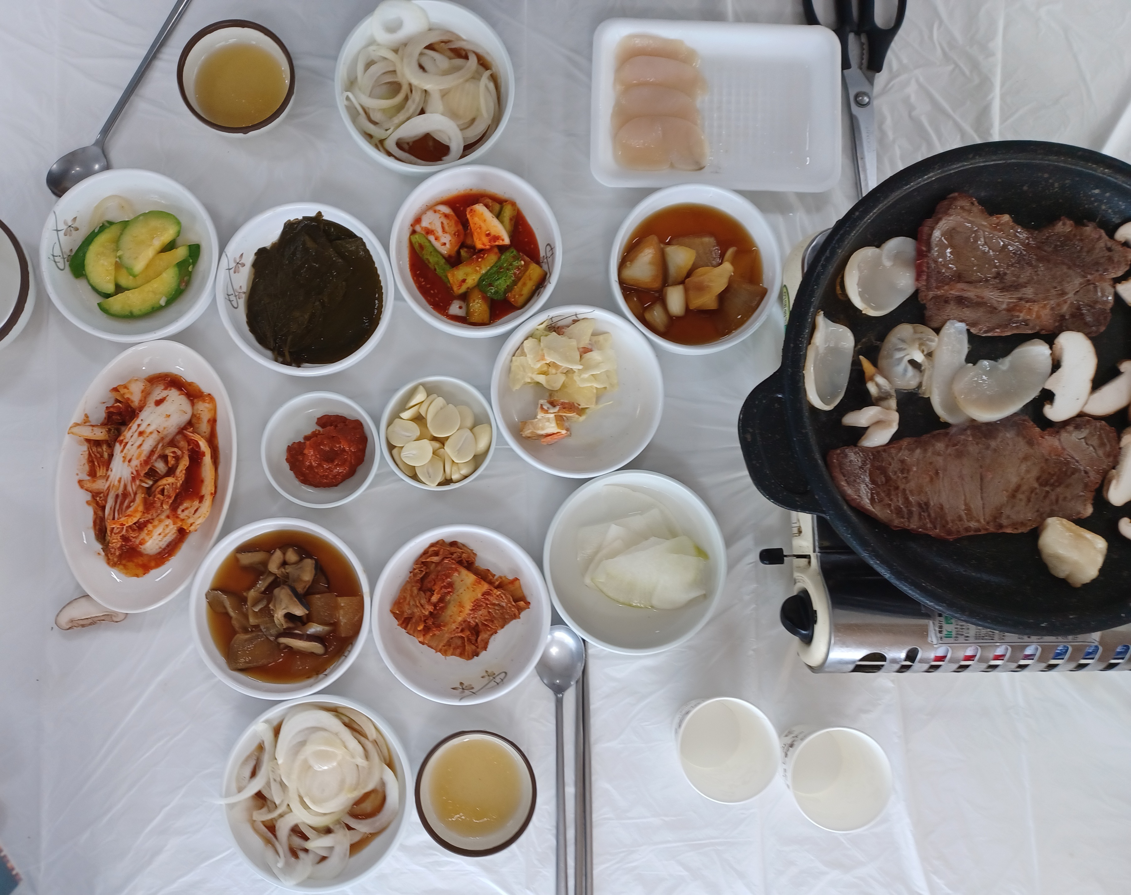 한우+관자+표고버섯 삼합을 먹고, 음식이 계속나오는 한정식, 백반, 해물탕까지 1박2일동안 잘 먹었습니다.