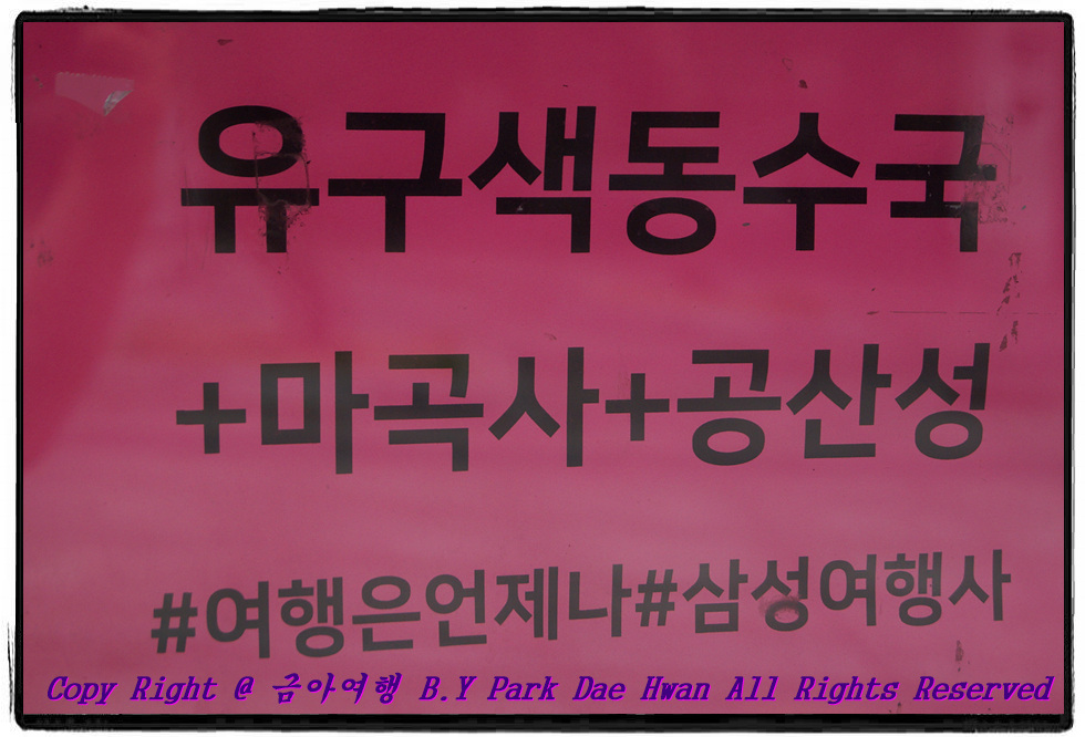 "여행과 장소의 변화는 우리의 마음에 활력을 선사한다" 라는 말이 있습니다. 아무것도 하지 않고 쉬러만 가도 활력이 생기는 것이 여행인 것 같습니다. 지금은 비록 장마철이지만 장마가 지나고 날씨가 더워 질 것입니다. 덥다고 집에만 계신다거나 반복된 일상, 똑같은 일상으로 살아가기 보단 반복되고 똑같은 일상, 스트레스에서 벗어나 여행한번 해보시는 것을 추천드립니다. 저는 합천 누비GO 시티투어 이후 지난주 일요일인 06월 25일에 충남 공주 당일 여행을 다녀왔습니다. 그럼 여행기 시작해보겠습니다^^ 06월 25일 일요일 아침 7시쯤 버스 탑승장소인 "법원 건너 농협"에 도착하였습니다. 제가 이용할 버스로는 드림관광 7941호 차량이었으며 이 날 가이드님으로는 저는 처음뵙는 이현의 가이드님께서 수고해주셨으며 안전운행으로는 조성철 승무사원님께서 수고해주셨습니다. 대구 법원 건너 농협을 출발하여 반월당, 두류 광장코아, 성서홈플러스까지 경유하였으며 저를 포함하여 총 42명의 여행객이 탑승하였습니다. 이 날 코스로는 공주 유구색동수국정원 부터 시작하여 마곡사 관람 및 중식, 공산성, 공주 정안천생태공원 메타세콰이어길 코스였습니다. 항상 삼성여행사를 통해서 여행을 해보신 분들은 잘 아시겠지만 일정표와 뺏지는 성서홈플러스까지 모든 여행객이 탑승한 이후 나누어 주시는데 삼성여행자 뺏지가 여행사 트레이드 마크이자 입장료가 있는 여행지에서는 하이패스 기능이 있습니다^^ 이 날은 입장료가 있는 여행지가 공산성이었으며 공산성에서 하이패스 기능을 담당하였습니다. 대구 출발한지 약 2시간 가까이 다된 09시10분경에 옥천휴게소에서 20분간 휴식을 하였습니다. 여행의 시작이자 여행의 꽃은 제 개인적인 생각이지만 휴게소 간식이라고 생각합니다 ㅎㅎ 호두과자, 핫바, 델리만쥬 등 주전부리가 많으니 여행의 꽃은 휴게소 간식이라고 생각하는 본인입니다. 이 날 저는 아침을 먹지 않고 왔기에 호두과자에 떡볶이까지 맛있게 먹어봅니다..^^ 대구 출발한지 약 3시간36분만인 10시56분경에 유구색동수국정원에 도착하였습니다. 유구 톨게이트 이후 엄청난 정체로 인해 시간이 조금 딜레이 되긴 하였지만 그래도 관람시간은 부족하지 않게 해주셨습니다. 유구색동수국정원 꽃 축제는 올해가 제 2회 축제였으며 1km 구간에 걸쳐 조성되었습니다. 아나벨과 산수국을 포함한 약 22종의 수국 16,000본이 식재되어 보기 좋게 개화하였습니다..^^         유구색동수국정원 둘러보면서 찍어본 수국사진 입니다..^^ 수국의 수는 "물 수" 한자를 사용하며 라틴어로는 "물을 담은 그릇" 이라는 뜻을 가지고 있습니다. 중국에서는 "비단에 수를 놓은 둥근공처럼 피는 꽃" 이라는 의미를 갖고 있으며 수구화로 불리우다가 꽃색이 변한다 하여 칠변화, 팔선화로도 불리웠다고 합니다. 공주 뿐만 아니라 경남 거제도, 신안군 도초도 가도 수국이 유명합니다^^ 제가 방문한 날이 유구색동 수국정원 꽃 축제기간이었으며 "온누리 공주시민" 가입하니 공주에서 나고 자란 농산물인 감자 한 봉지를 선물로 받았습니다..^^ 유구색동 수국정원 관람 이후 다음 여행지인 마곡사로 이동하였습니다.   30분 정도 이동하여 마곡사에 도착하였으며 가이드님께서는 마곡사부터 먼저 둘러보고 식사하시는 것을 추천해주셨습니다..^^ 마곡사는 충남, 대전, 세종 지역 조계종 사찰을 관장하는 대본산으로써 유네스코 세계유산으로 지정되기도 하였습니다. 한반도 남쪽 지방에 위치한 양산 통도사, 영주 부석사, 안동 봉정사, 보은 법주사, 공주 마곡사, 순천 선암사, 해남 대흥사 등 "산사 한국의 산지 승원" 7개 사찰 중 하나 입니다. 마곡사는 태화산에 자리잡고 있는데 특히 봄이 가장 아름답다고 하여 "춘마곡 추갑사(봄은 마곡사, 가을은 갑사)" 라는 말이 있습니다. 특히 마곡사는 1898년에 백범 김구 선생도 마곡사를 찾아와 자취를 남기기도 하였습니다. "마곡사 해탈문" 입니다. 마곡사의 정문으로써 이 문을 지나면 속세를 벗어나 불교 세계로 들어가게 되며 해탈을 하겠다는 마음을 갖게 된다고 하여 해탈문이라고 불리게 되었습니다. 마곡사 5층석탑부터 대광보전, 대웅보전 입니다. "마곡사 대광보전" 입니다. 대웅보전과 함께 마곡사의 본전으로써 건물 내부에는 진리를 상징하는 "비로자나불" 불상이 동쪽을 바라보며 모셔져 있습니다. "마곡사 5층 석탑" 입니다. 원나라 라마교의 영향을 받아 세워진 탑으로 다보탑이라고도 불립니다. "마곡사 대웅보전" 입니다. 임진왜란 때 소실되었다가 각순대사에 의해 다시 중수되었으며 현존하는 전통 목조건축물 가운데 많지 않은 중층 건물 입니다. 마곡사 계곡 입니다. 이 날 날씨가 더웠는데 등목 한번 시원하게 해보고 싶었습니다 ㅎㅎ "김구 선생 기념식수" 입니다. 백범 김구 선생이 1896년 명성황후 시해에 대한 분노로 황해도에서 일본군 장교를 살해한 후 은거하여 1898년 권종이라는 법명으로 잠시 출가 수도하였던 곳입니다. 광복 이후 김구 선생이 이 곳을 다시 찾아 대광보전 주련을 보시고 더욱 감개무량하여 향나무 한 그루를 심어놓으셨습니다. 마곡사를 둘러본 후 마