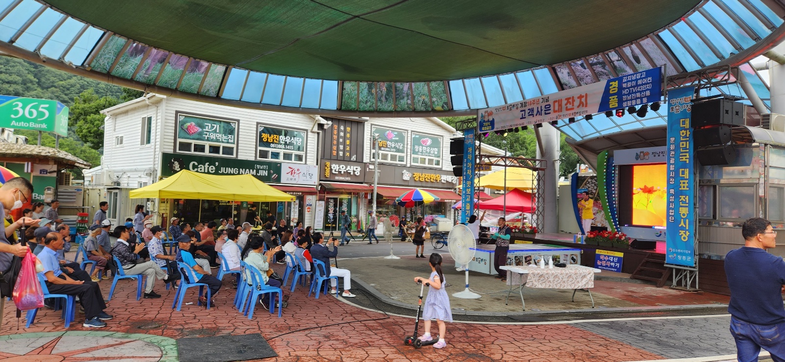 작년 이맘때쯤 삼성여행사에서 강릉+속초 식도락 여행을 다녀와서 만족을 했다. 여름을 앞두고 여행을 계획하면서 캠핑장, 펜션, 휴양림 등 여러가지를 염두에 두고 논의한 결과 다시 식도락여행을 가자고 의견이 모아져서 전라도 쪽으로 신청을 하였다. 얼리버드라고 해서 할인도 해 주고 해서 출발 전부터 마음이 설레었다. 강진쪽 식도락 여행이 어땠는지 후기를 살펴보니 후기가 잘 없었다. 그래서 별로인 건가하고 떠나기 전부터 조금 걱정을 한게 사실이었다. 떠나기 전날 금요일부터 하늘에서 구멍이 뚫린 것처럼 비가 왔다. 토요일, 주말 일기예보에도 비 소식이 있었다. 걱정은 되었지만 작년에도 강릉+속초 여행시 비가 왔던 기억을 떠올리며 비가 오면 오는대로 좋은 여행이 될거라 믿었다. 8시쯤(늦게 출발하여 좋았음)차를 타고 일행들을 태우면서 여행이 시작되었다. 원래 신청했던 사람들이 취소를 하는 바람에 가이드분이 참가를 못하는데 신청해 주신 분들을 위해 가이드분이 배정이 되었다고 한다. 역시 운이 좋은 것 같았다. 비가 부슬부슬 내리기는 하였지만... 점점 날이 개이는 것 같았다. 3시 30분쯤 달려 정남진인 고흥에 도착했다. 고흥은 한우가 유명한 것 같았다. 한우+키조개+표고버섯 삼합으로 점심을 먹었다. 여자 4명이다 보니 한우 고기는 적당했다. 만약 남자분들이라면 조금 고기가 모자랄 것 같다는 생각이 들었다. 역시 고기가 맛있었다. 밑반찬도 맛있었고.. 역시 여행을 잘 왔다고 하면서 여행후 토요시장을 구경을 했다. 보통 여행을 가면 시장을 들리기는 하지만 문이 닫겨 있는 경우가 많았는데 공연도 하는 걸 보니 큰 시장 같았다.