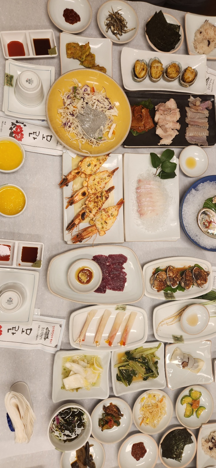 시간을 넉넉하게 주어서 쫓기듯이 여행하는 것이 아니라 천천히 경치를 구경하고 이야기도 하면서 다녔다. 저녁은 상다리가 부러진다는 남도 한정식이었다. 말 그대로 음식이 계속 나왔다.