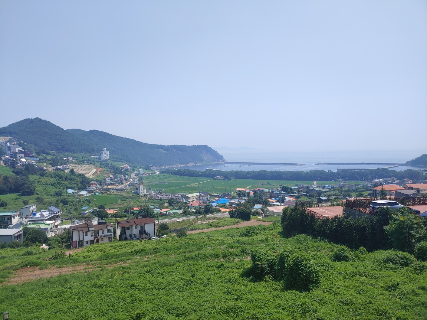빨간 지붕과 바다의 푸른 색이 잘 어울리는 곳이었습니다.