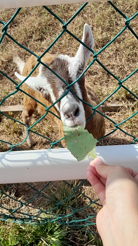 주위를 둘러보는데 염소 소리와 소 소리가 나길래 살펴봤는데 염소떼 목장이 있는게 아닌가. 그곳에서 염소에게 풀을 먹여주었다.  그중에서 가장 큰 염소가 계속 얼굴을 갖다 대길래 살짝 무서운 나머지 옆에 있던 작고 순한 황갈색 염소에서 나뭇잎을 거의 다 주었다.blush