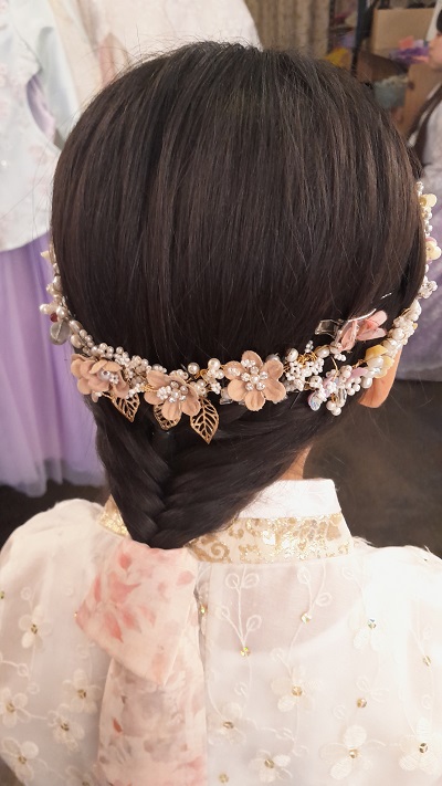 그다음은 엄마! 엄마는 올림머리를 한다고 하셨다. 완전 텔레비전에서만 보던 올림머리를 했는데 아직 장신구는 하지 않았지만 대박이었다. 그 뒤에 많은 장신구, 비녀를 꼽자 엄청 예쁜 머리가 완성되어있었다!!