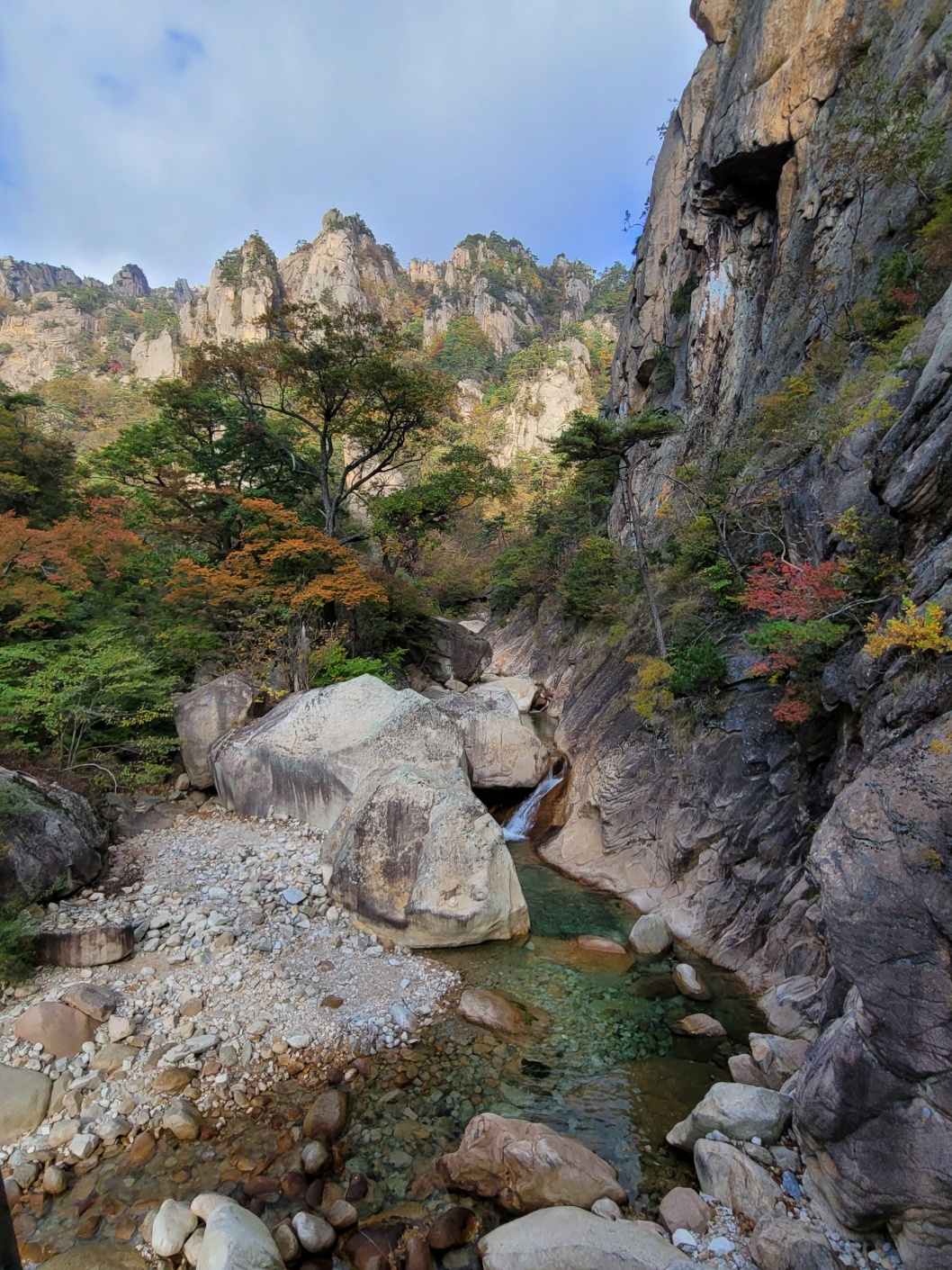 단풍이 들기 시작하는 주전골 계곡길을 걸으며 설악의 경관에 감탄하고