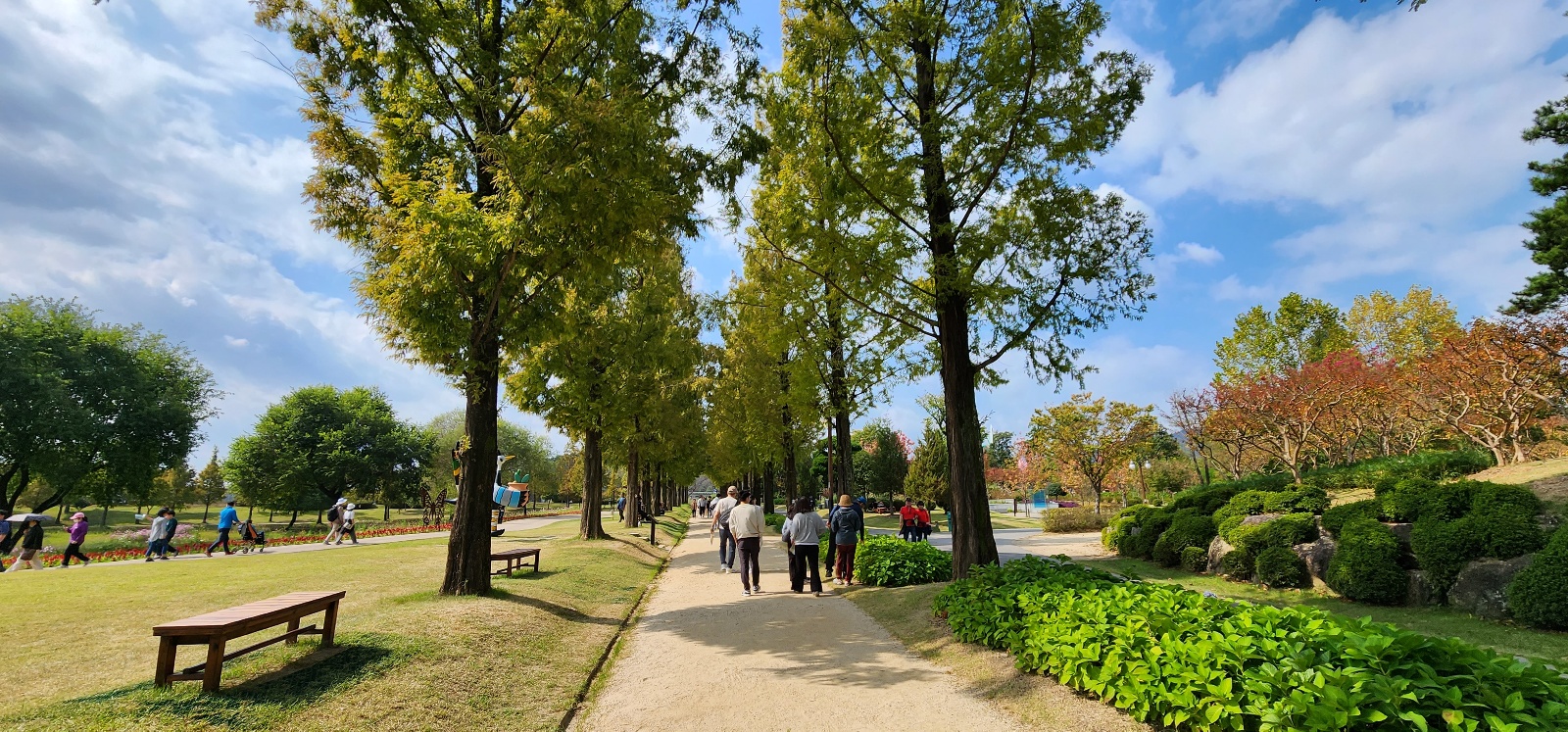 코스모스와 다양한 꽃들과 여러 종류의 정원과 습지, 동산과 어우러진 가을 날씨를 느낄 수 있었습니다.