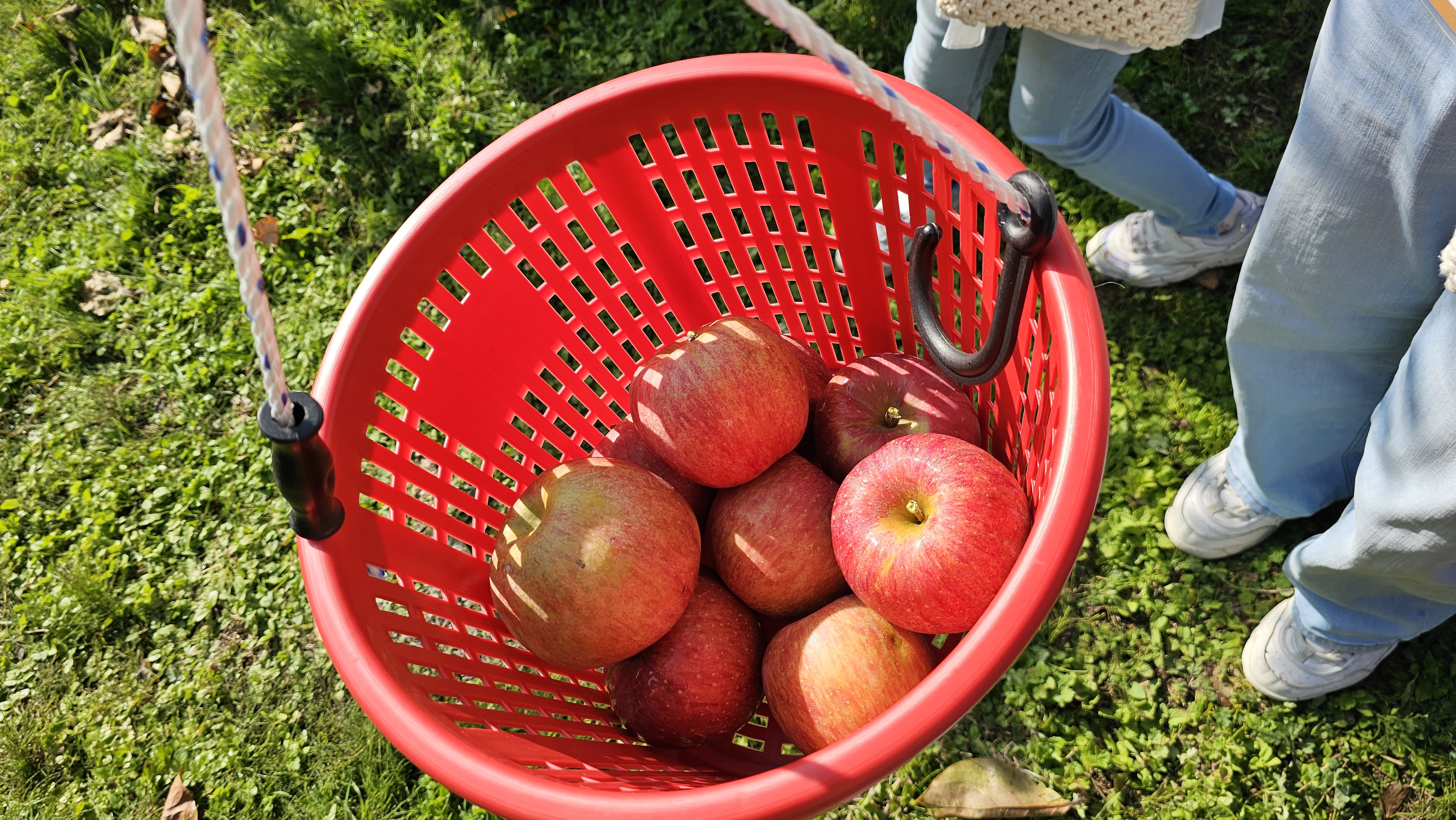 사과바구니에 9개를 담으니 그득그득 아이들이라고 주인분이 1개씩 더 주셨어요 오예 특템