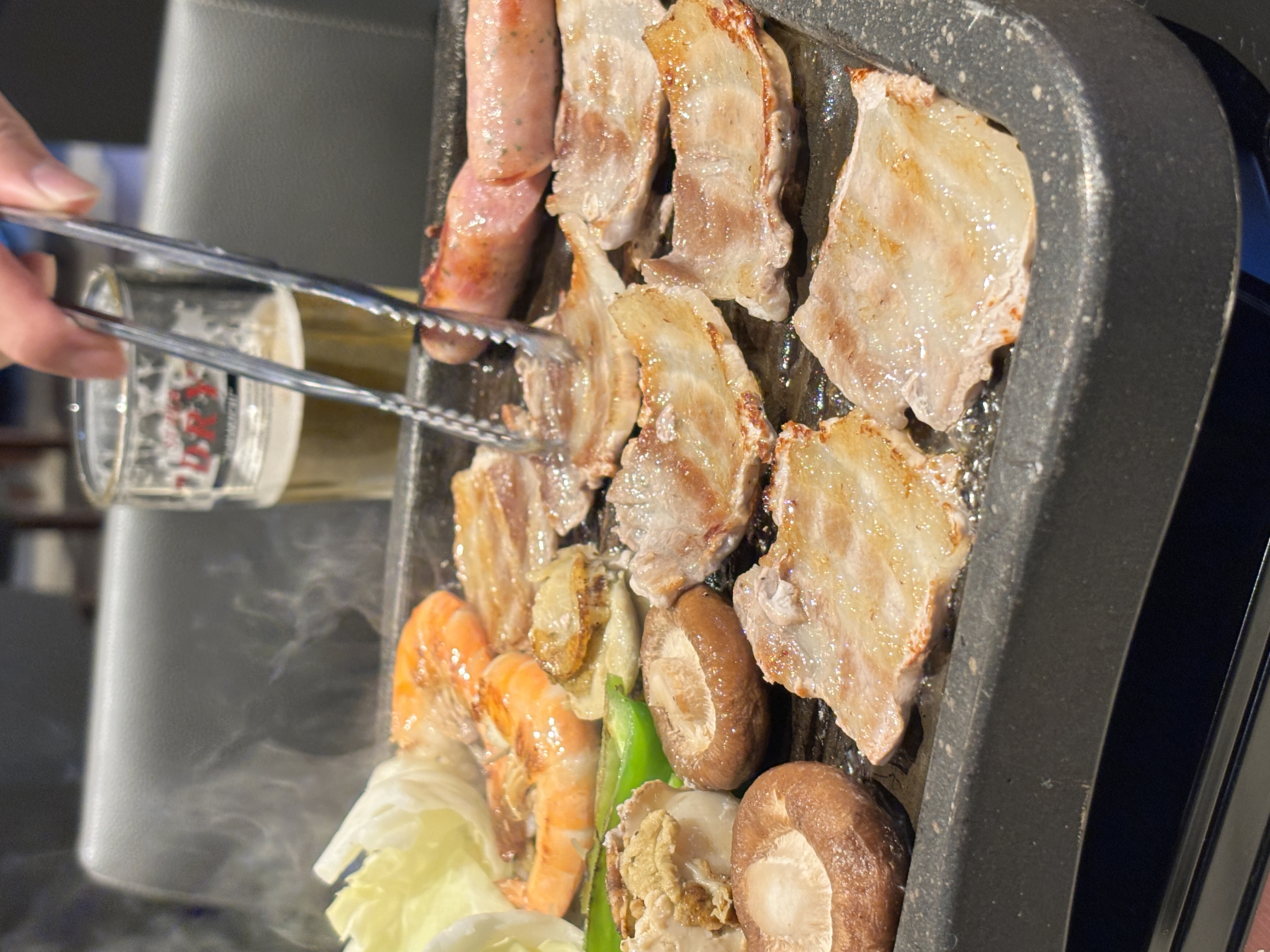 삼겹살 파티~~~ 밥과 국은 무한으로 먹을 수 있다 했는데 벨류마트에서 산 도시락 먹어야되서 적당히 먹고 삼겹살과 맥주로 마무리 했어요