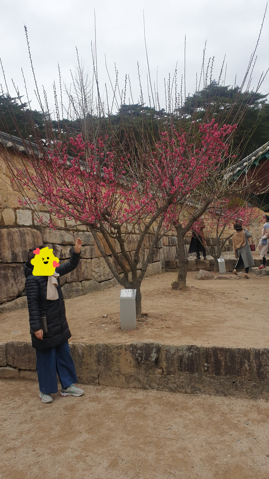 통도사에 도착해서 홍매화가 군데군데 있는데