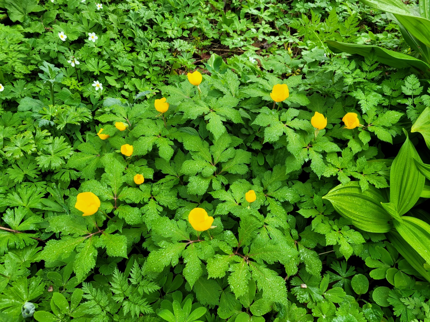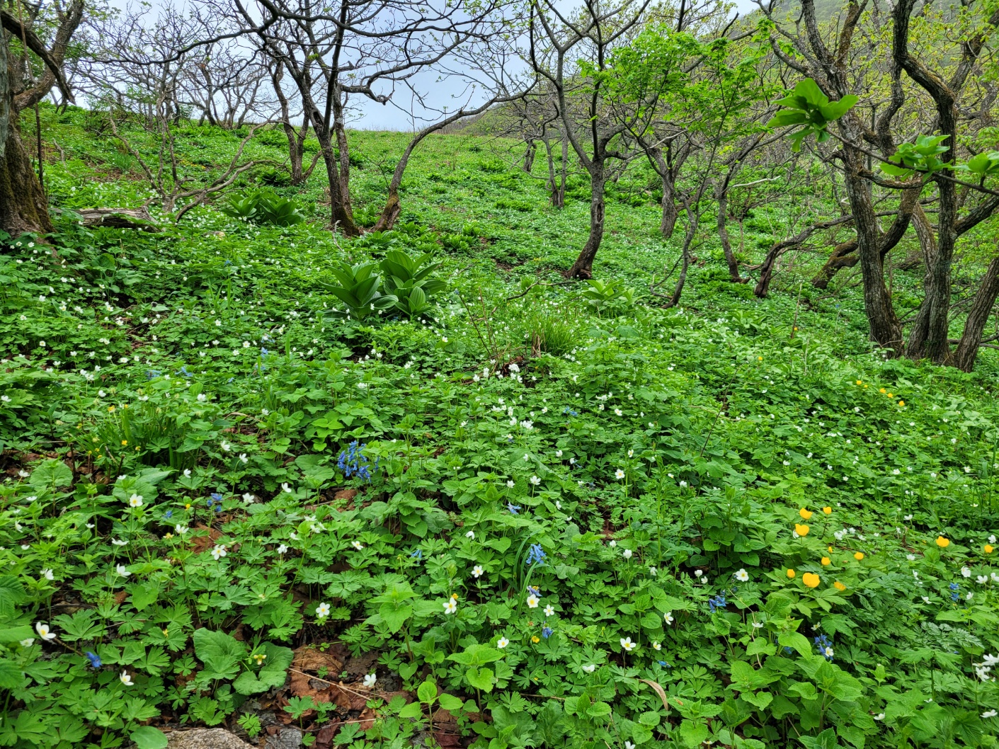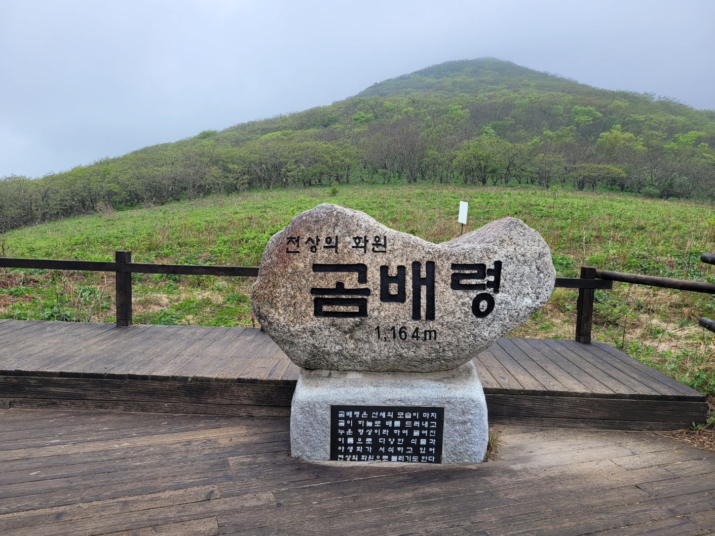 야생화가 만발하여 군락을 이루고 곰배령의 탁트인 정경과 표지석을 배경으로 기념컷을 하면서