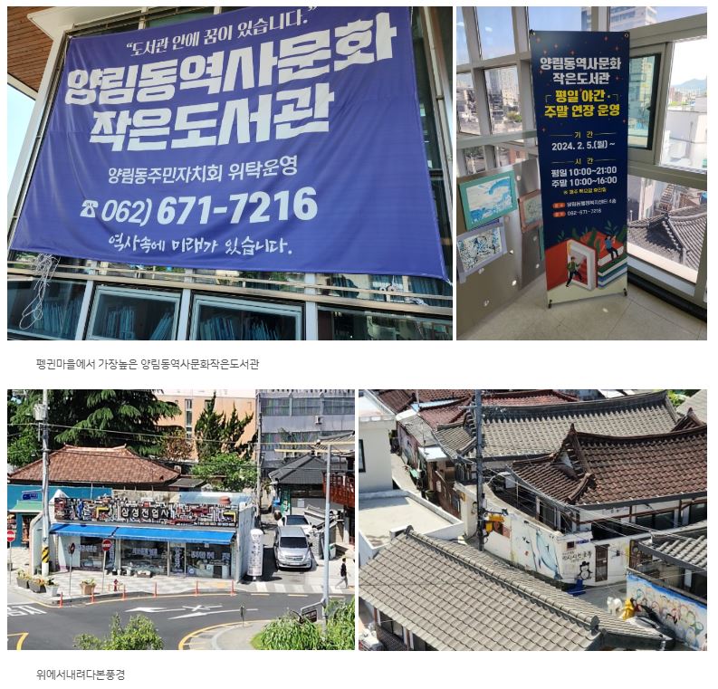 펭귄마을은 70,80년대 마을이 전시장으로 변모한 곳으로 마을 어르신이 뒤뚱뒤뚱 걷는 모습이 펭귄 같다고 하여 불려진 마을 이름이에요 저는 먼저 마을의 가장 높은 건물인 양림동 역사문화작은 도서관으로 올라가서 펭귄마을의 모습을 카메라에 담았어요 그리고는 펭귄마을을 돌아보았는데요 그 중에서도 슬럼프가 오는건 자기인생행에 최건을 다한것이라는 문구가 인상깊어서 찍어보았어요