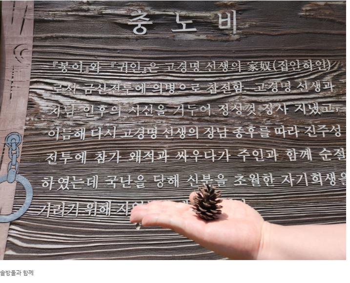 학교에서 배울때 표충사라고 배운것 같은데 포충사였어요.. 포충사 앞에 가면 qr코드로 설명이 잘 되어 있더라구요. 마지막에는 솔방울과 함께 사진한 컷!