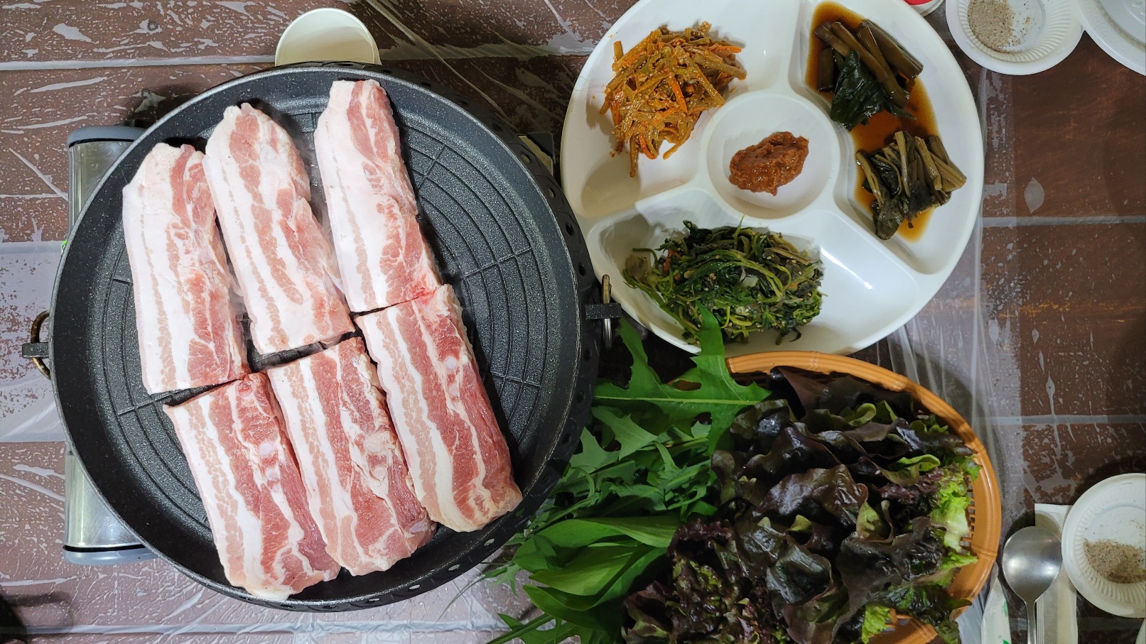 속초중앙시장과 영금정을 구경한 후 곰배령에 도착 삼겹살과 산나물이 풍성한 만찬을 즐기며 첫날을 보내고