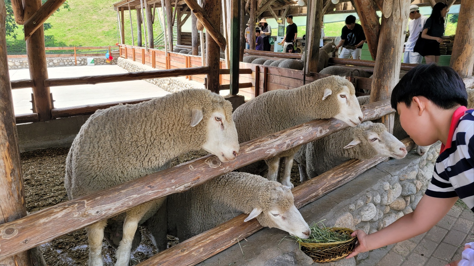 양들에게 건초주기 체험도 합니다 오죽헌 경내도 구경하고 안목해변 카페에서 커피도 마시고