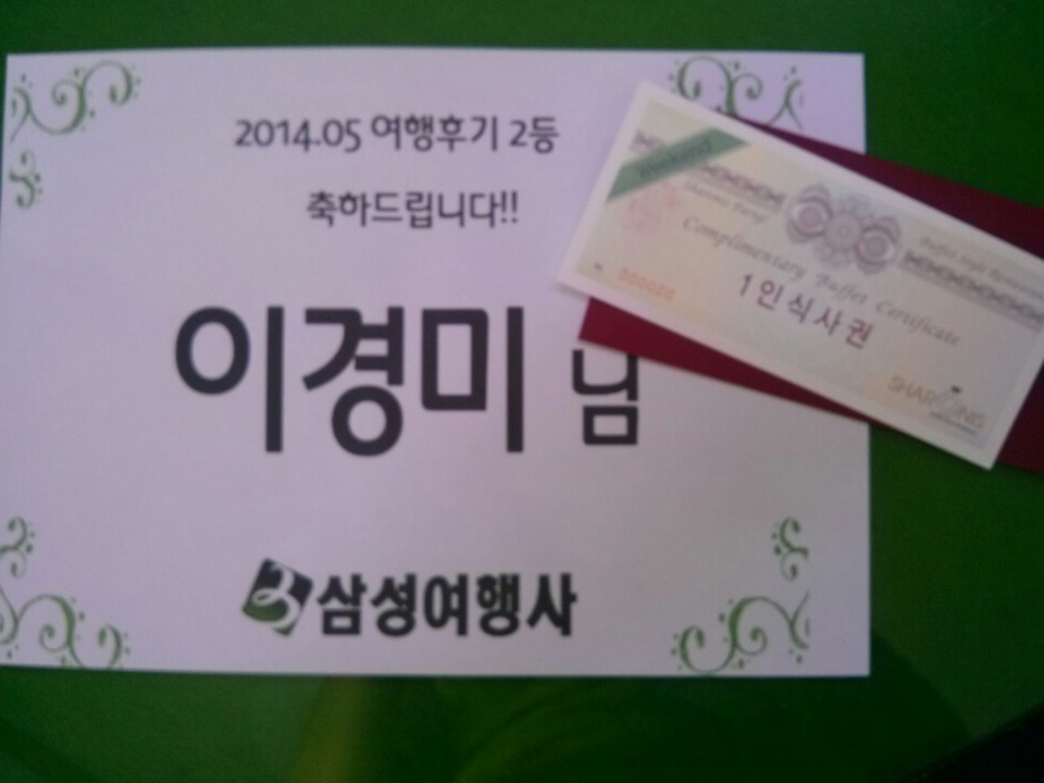 영화표는 여행후기 등록 당시 핸드폰으로 보내드립니다.