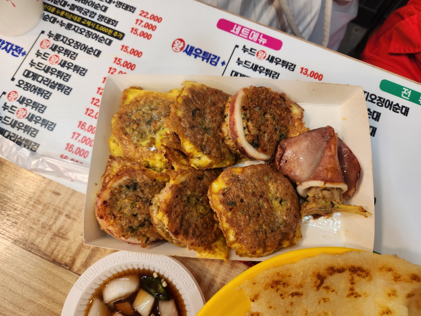 순대, 감자전을 먹고 저녁때 숙소에서 먹을 거리로 샀습니다.